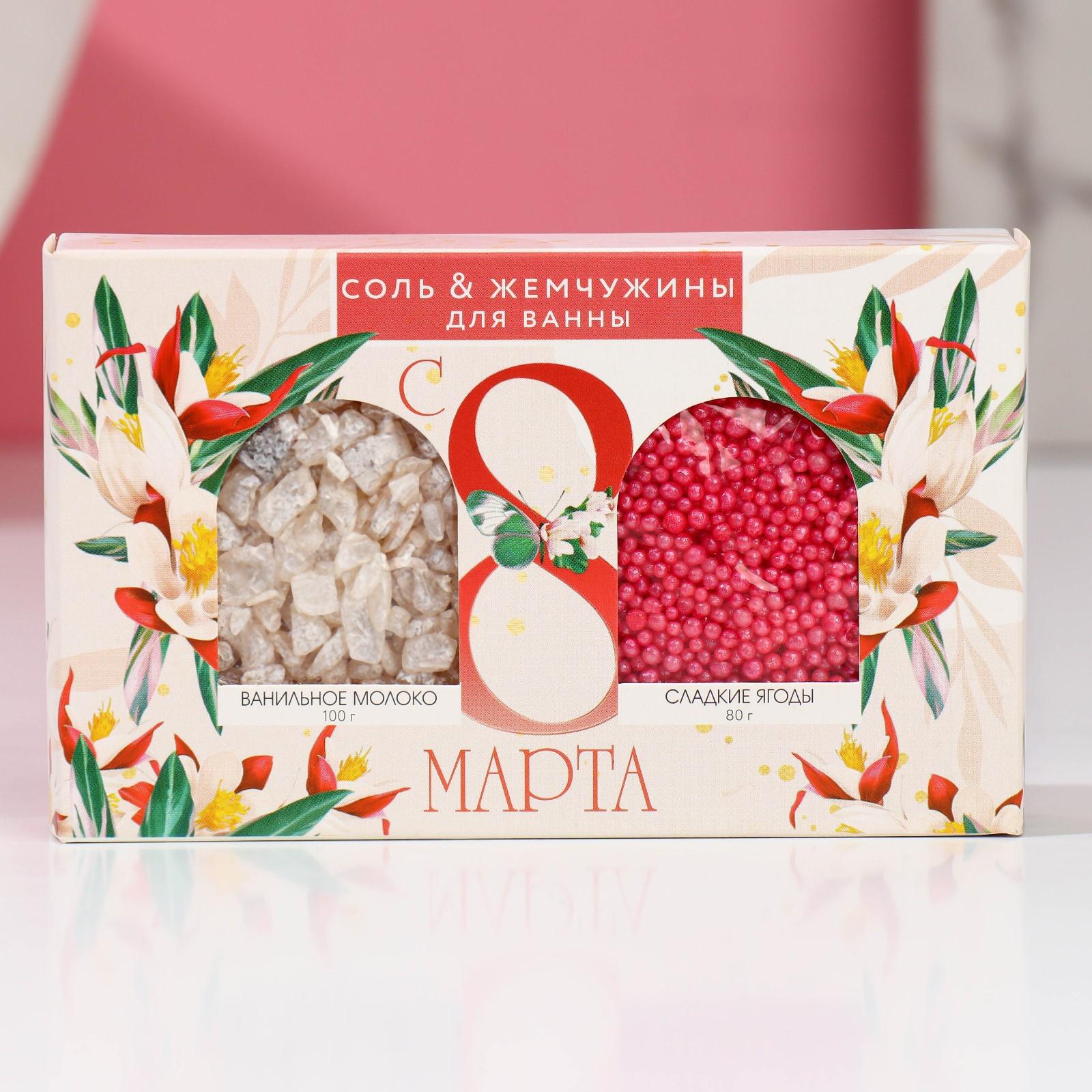 Набор "С 8 марта!", соль и жемчуг для ванны, ваниль и ягоды