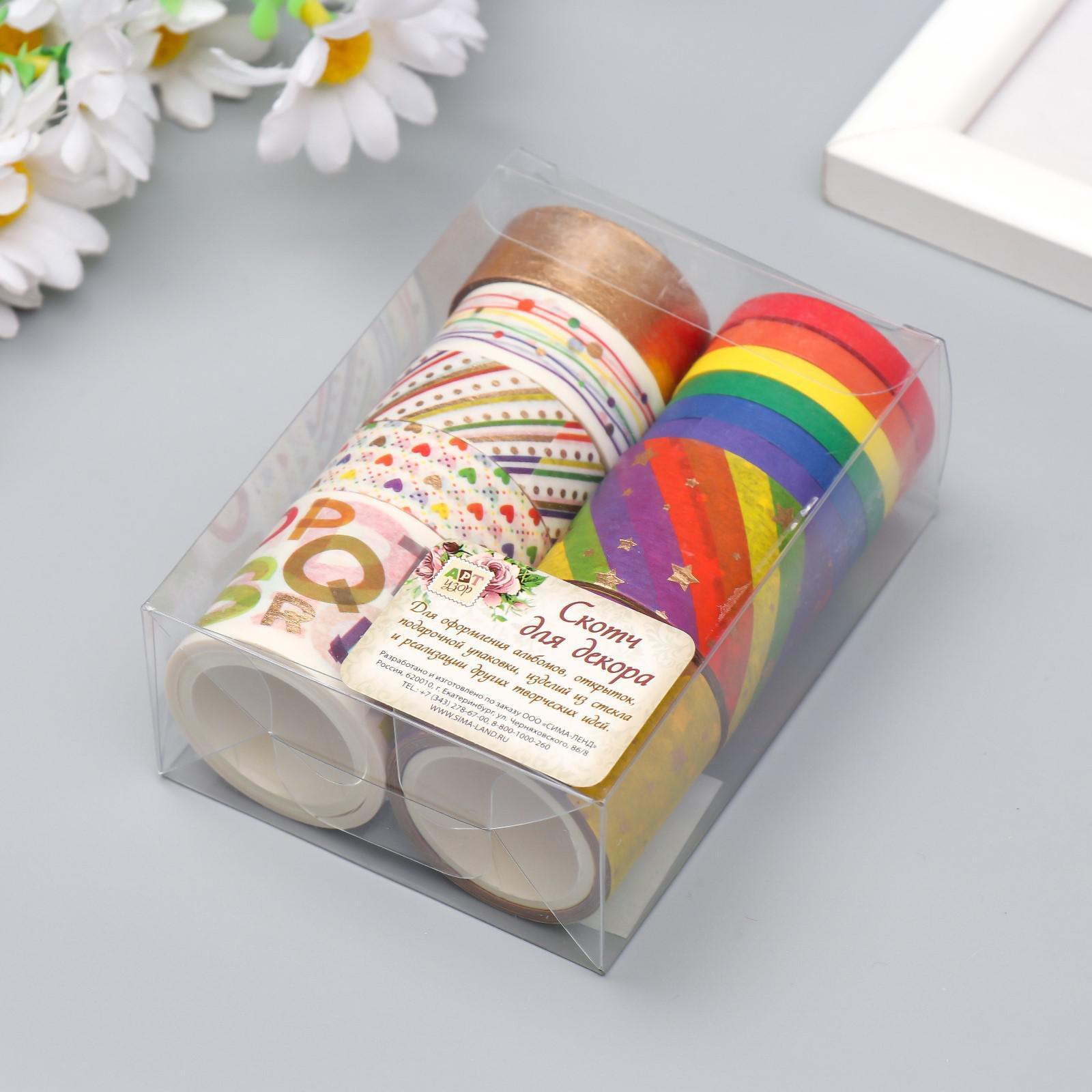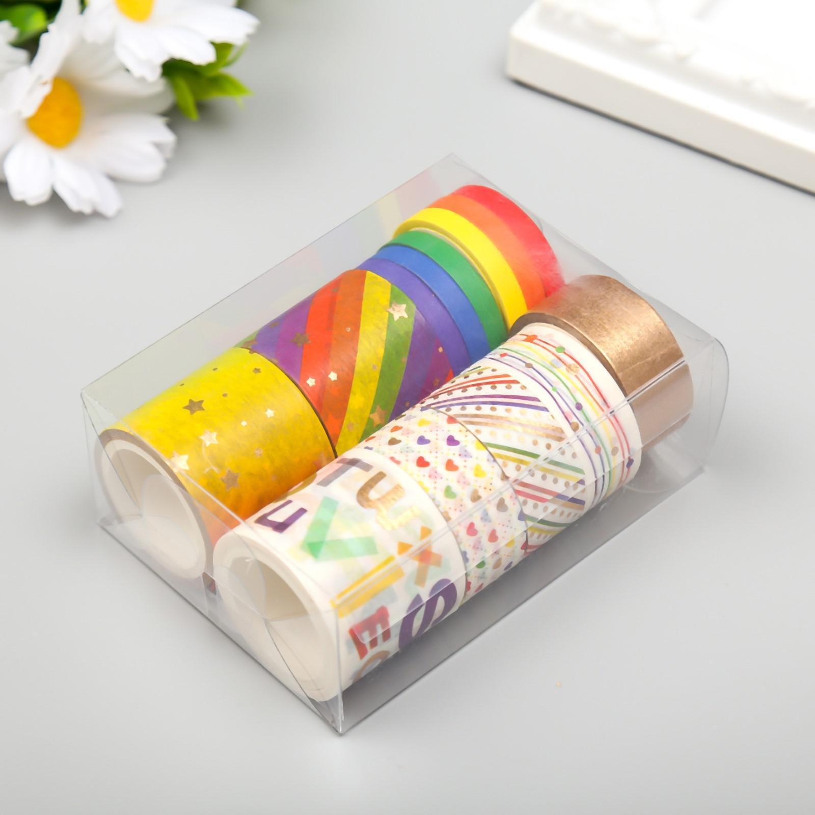 Клейкая лента бумага "Радуга" набор 13 шт ширина 0,5;1,5;3 см длина 3 метра 9,5х7х3,5 см