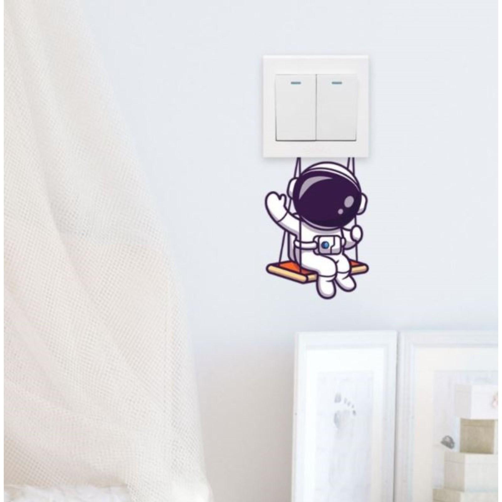 Наклейка на выключатель цветная "Космонавт на качеле" 11,5х15 см