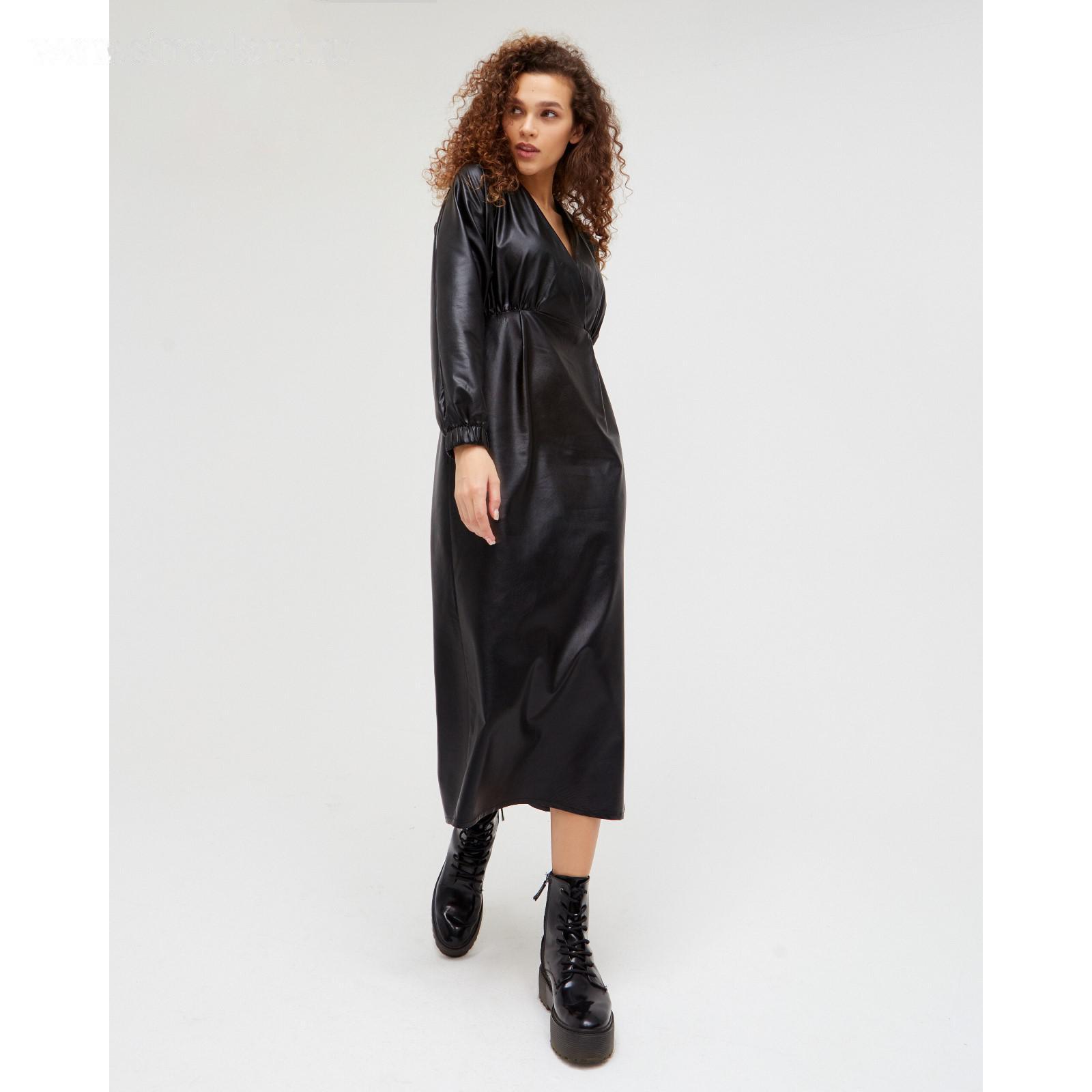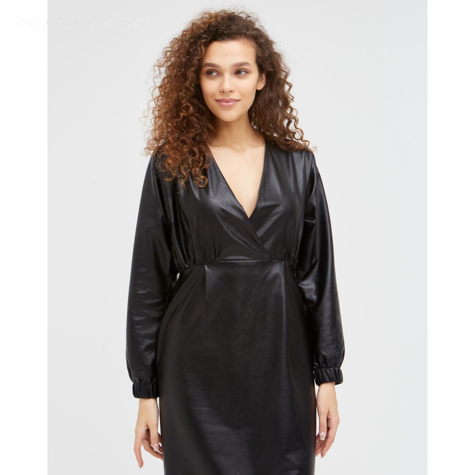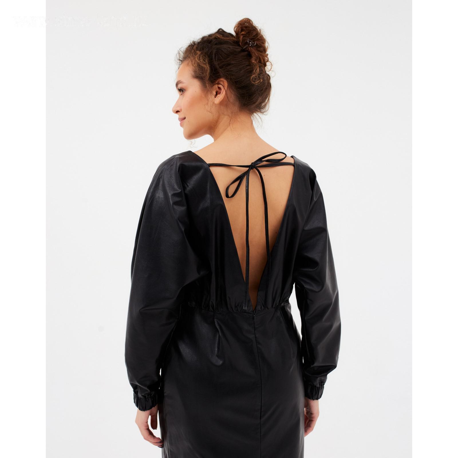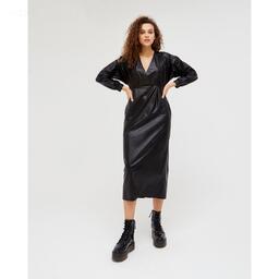 Платье женское длина миди MINAKU: Leather look цвет чёрный, р-р 44