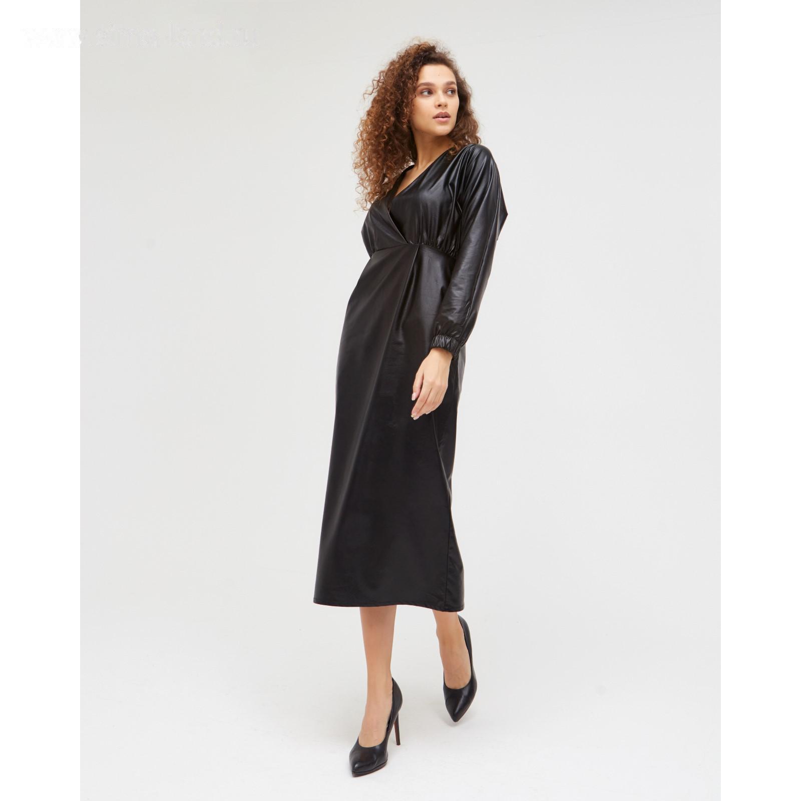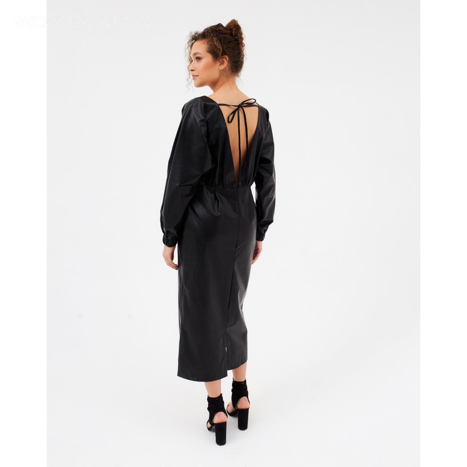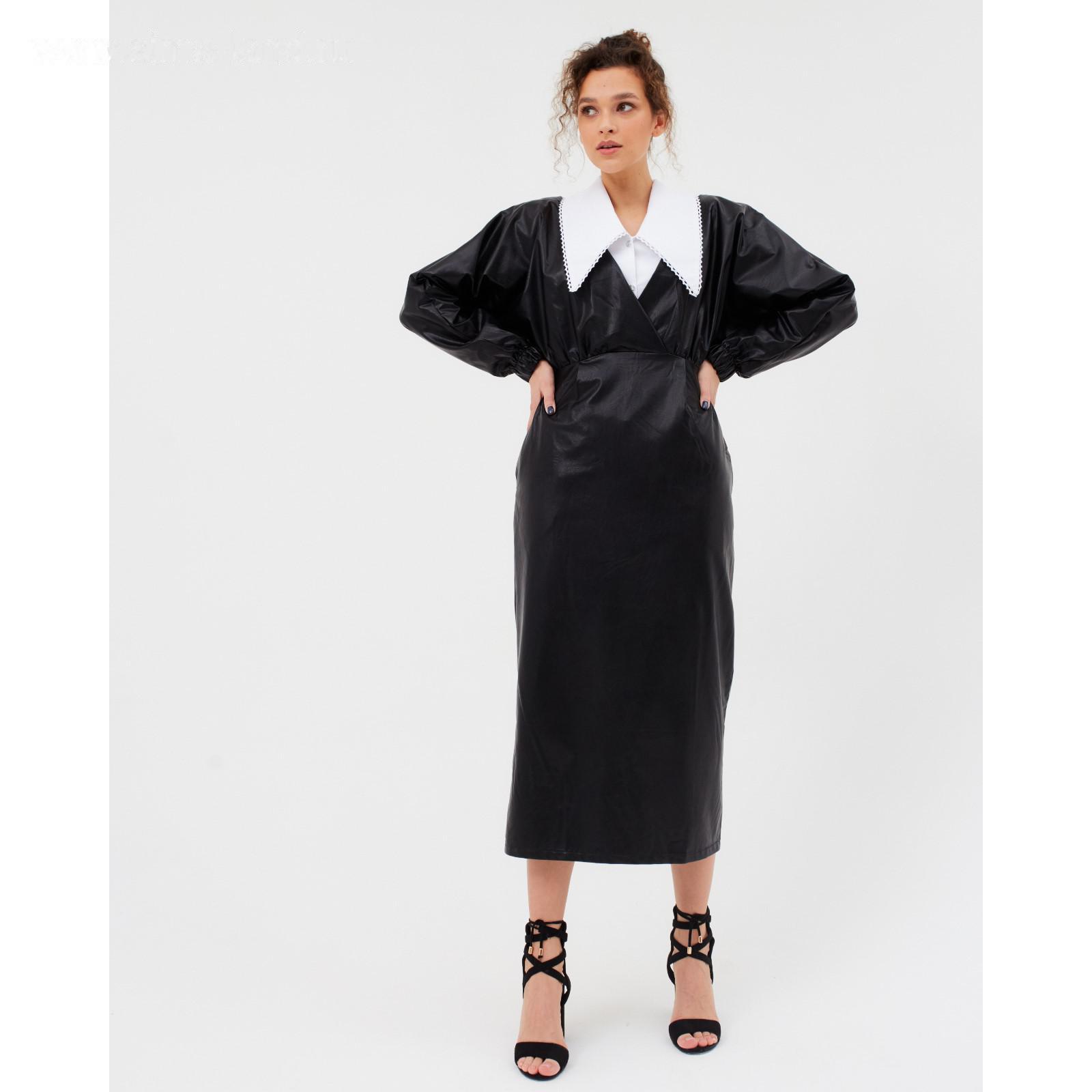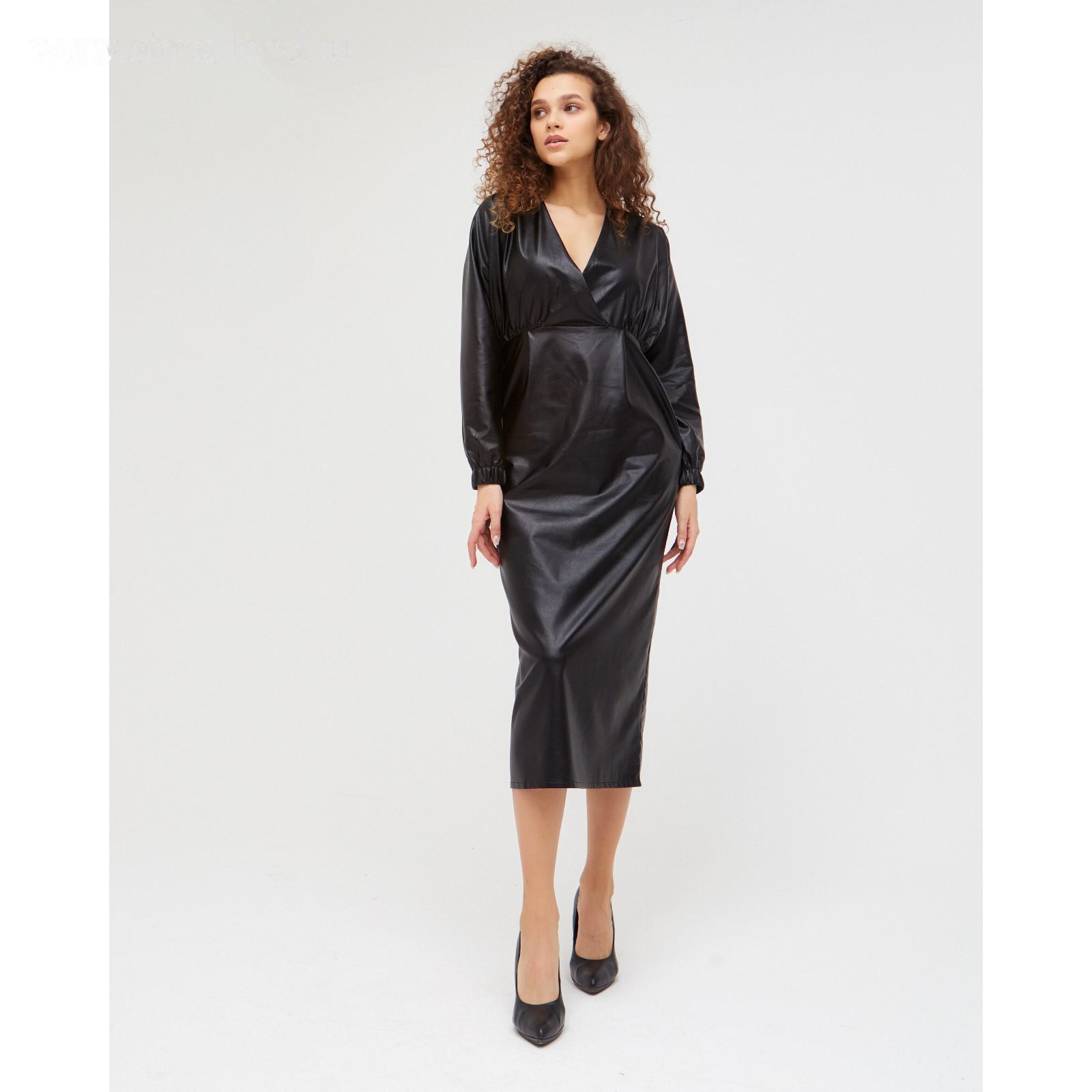 Платье женское длина миди MINAKU: Leather look цвет чёрный, р-р 44