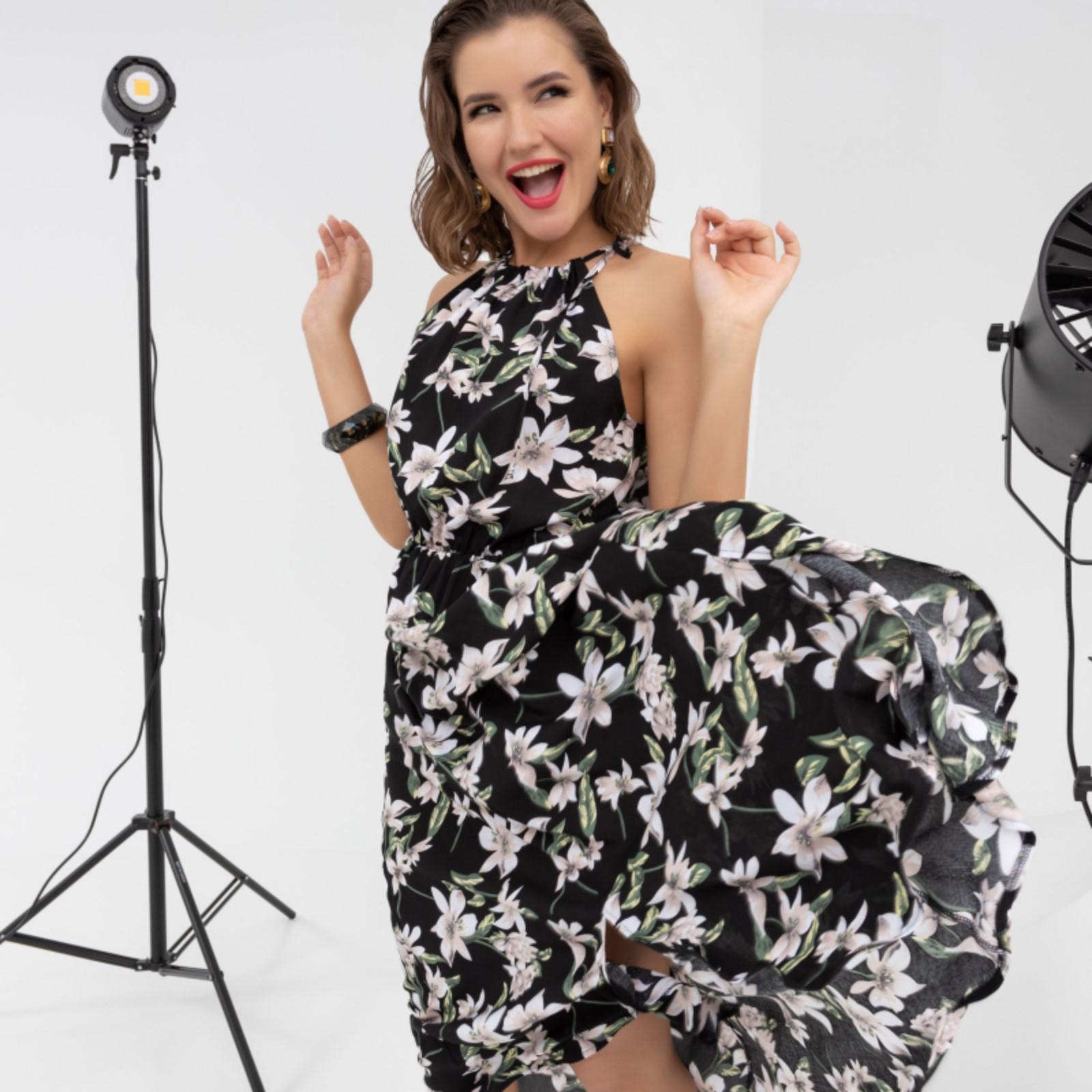 Сарафан женский Charutti «Внезапное свидание», размер 46, цвет чёрный, принт цветы
