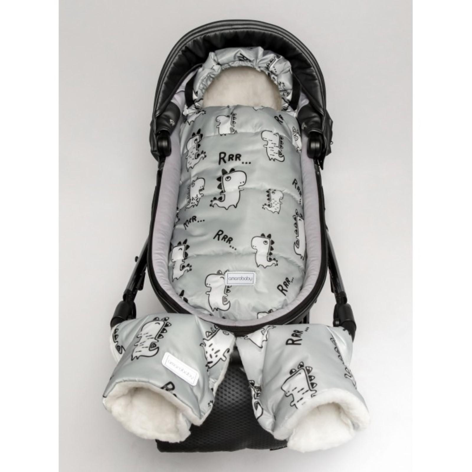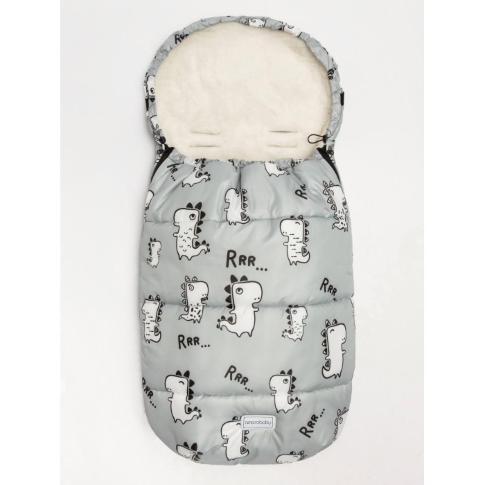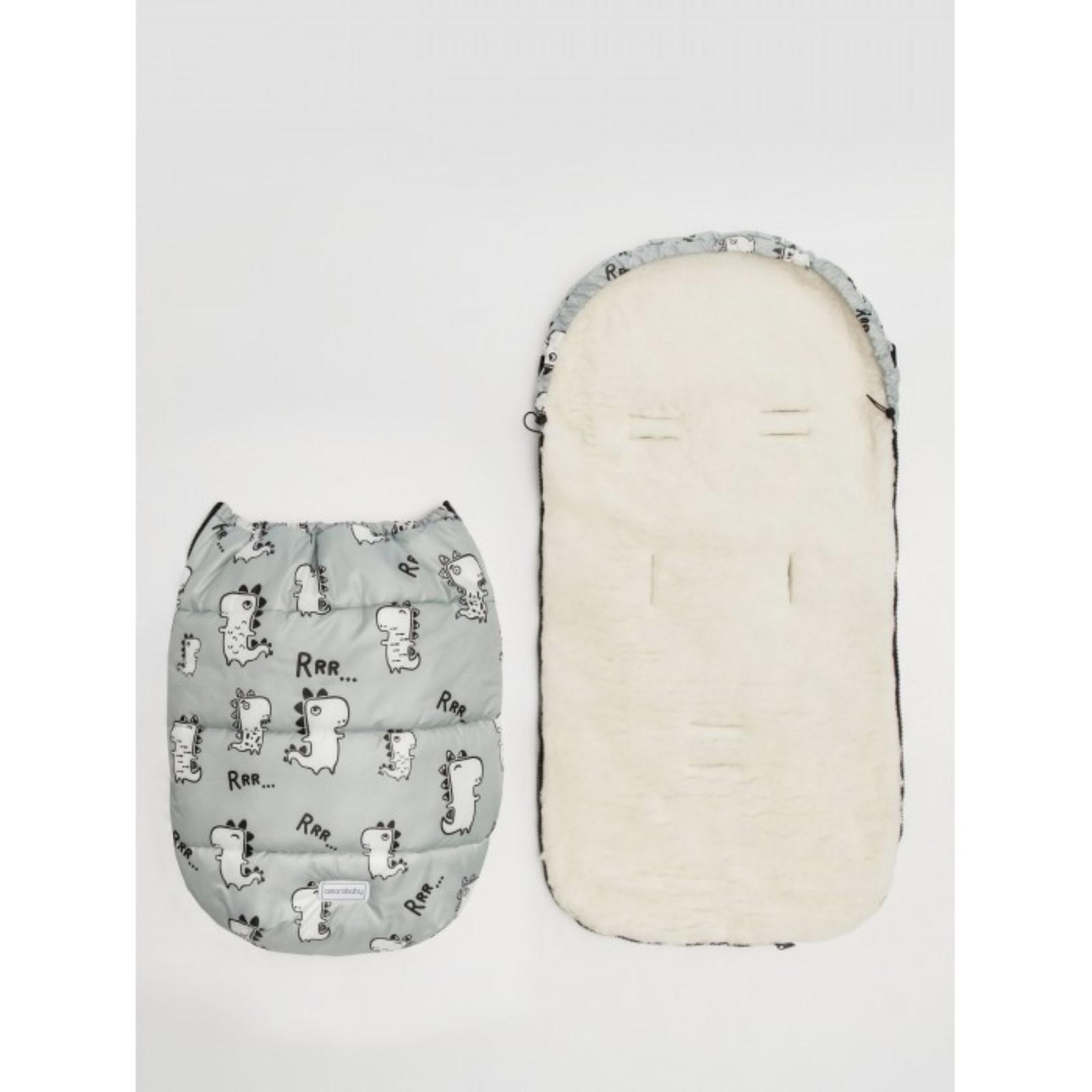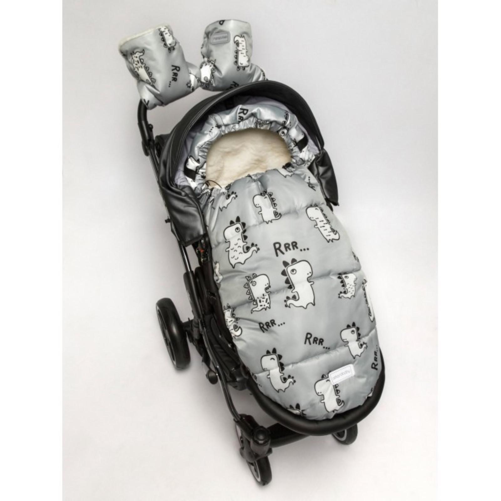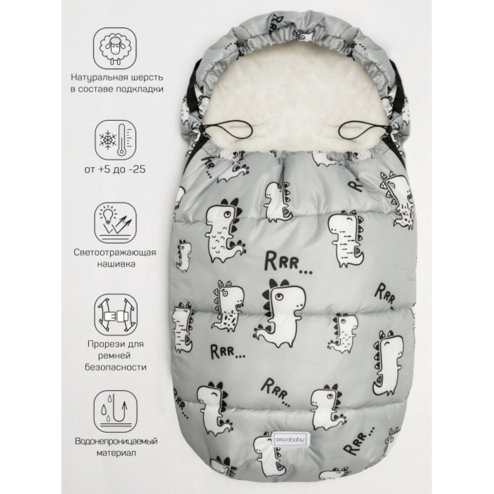 Конверт зимний меховой «Динозавры», размер 105 см, цвет серый