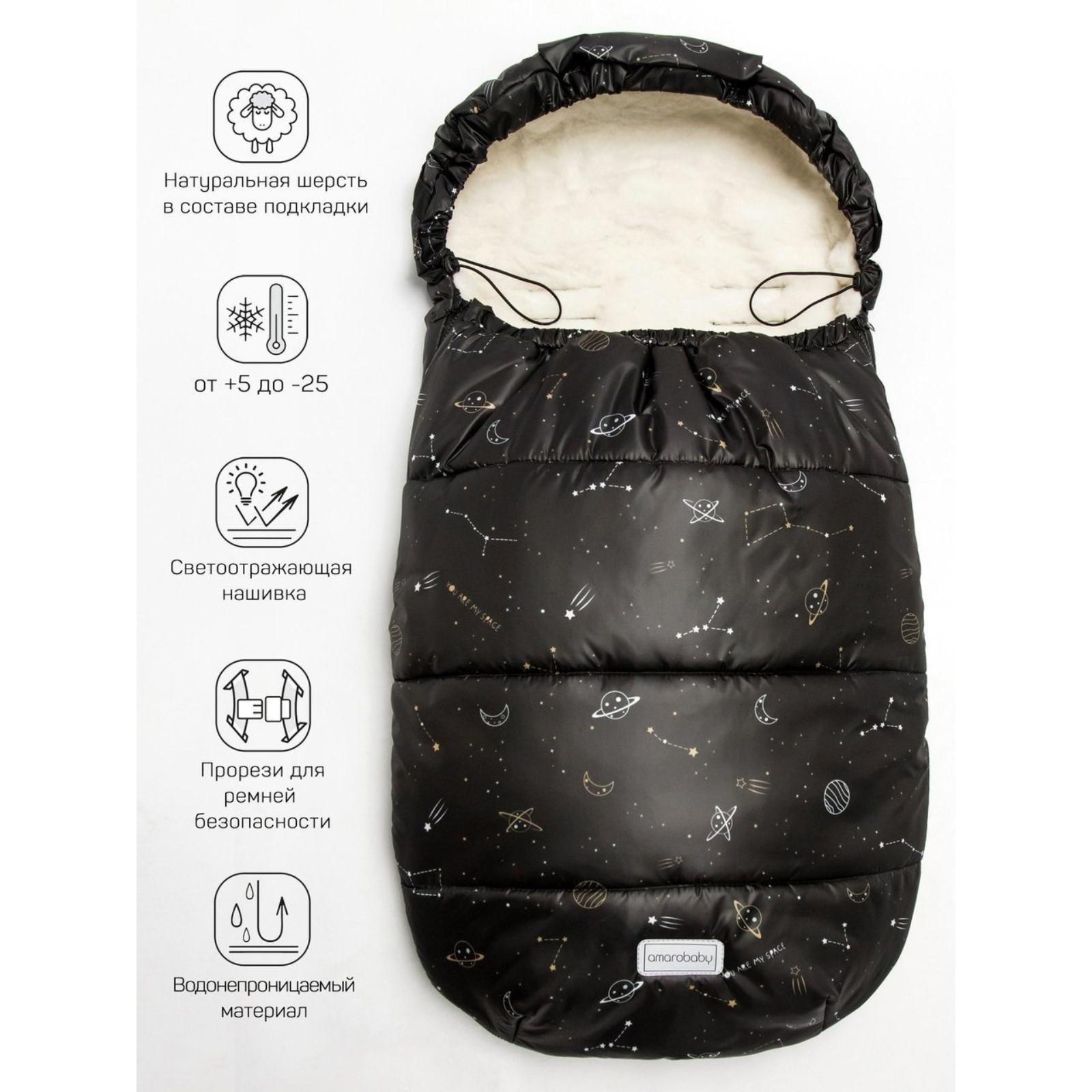 Конверт зимний меховой «Космос», размер 105 см, цвет чёрный