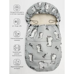 Конверт зимний меховой Snowy Baby, размер 85 см, принт динозавры