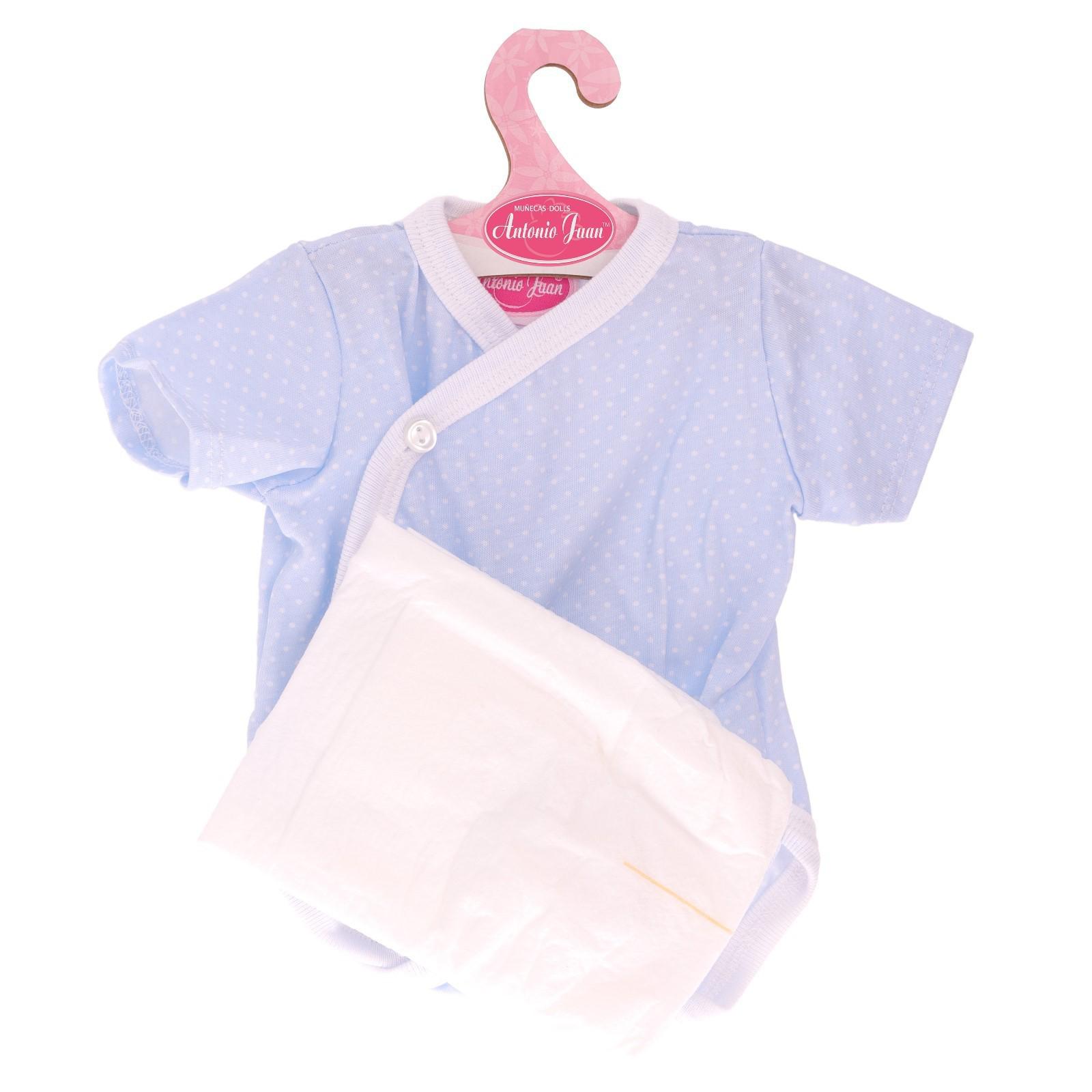 Одежда для кукол и пупсов 40-45 см, боди голубое в горошек, подгузник/памперс