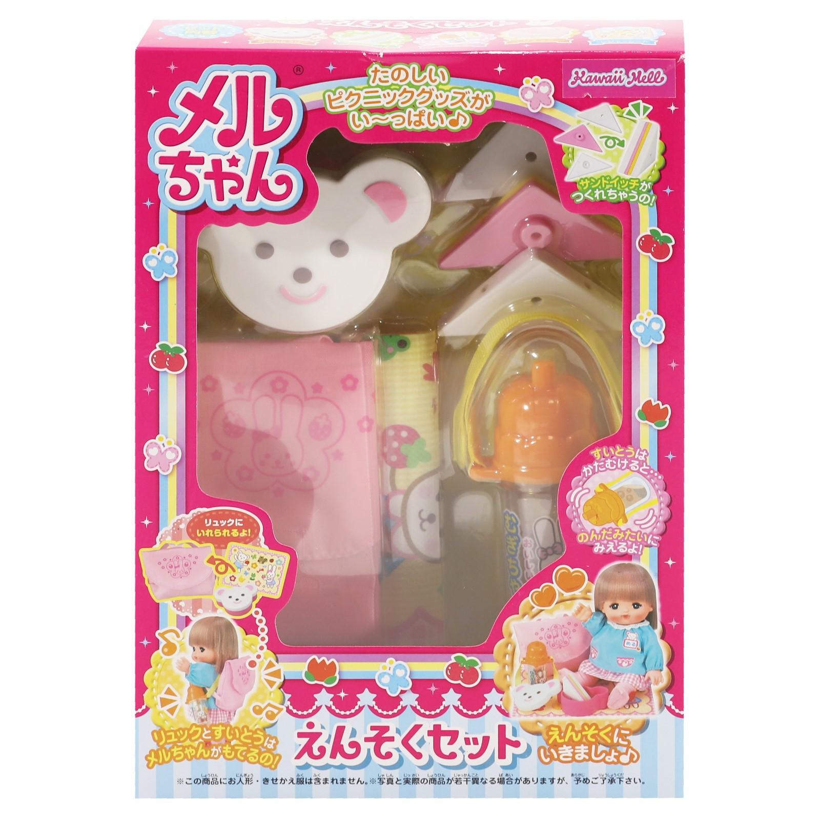 Все на пикник! А Милая Мелл с удовольствием составит компанию. Вы можете приготовить бутерброд и положить его в забавную коробочку в виде медвежонка. В наборе для пикника есть даже термос с чаем, который надевается через плечо куклы. Если наклонить термос ко рту куклы, то кажется, будто кукла действительно из него пьёт. В набор также входит коврик для пикника.