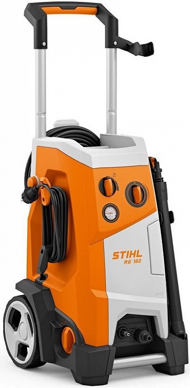 Мойка высокого давления STIHL RE 150 — мощная машина, которая позволяет эффективно и при необходимости в течение длительного времени очищать различные поверхности без повышенной нагрузки на спину и руки пользователя. Имеется телескопическая рукоятка из алюминия, которая облегчает не только процесс эксплуатации, но и хранения. Еще есть дополнительная рукоятка для переноски, которая делает более простым процедуру подъема, переноса и погрузки в транспортное средство. Предусмотрен интегрированный отсек для хранения форсунок.