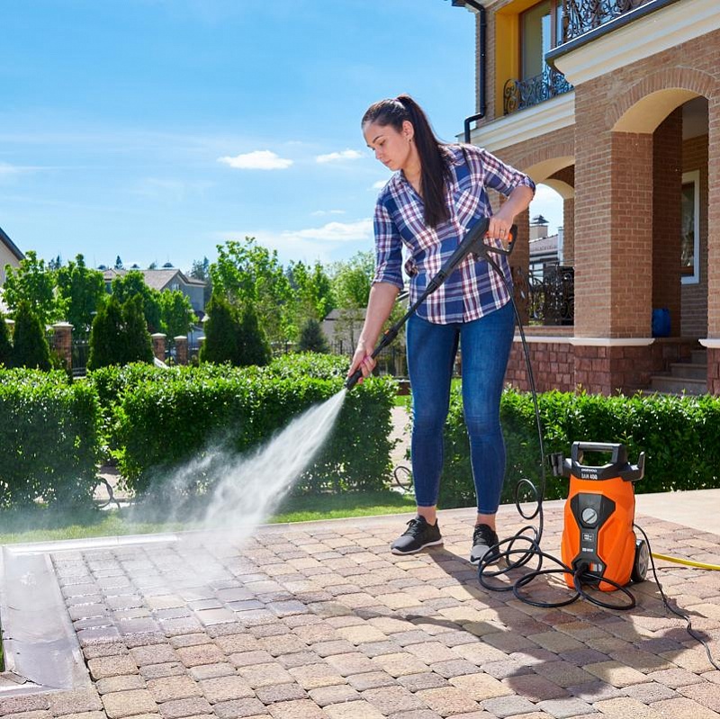Мойка высокого давления DAEWOO DAW 400 – электрическое оборудование для очистки в домашних условиях на открытом воздухе различной транспортной, садовой техники, а также деревянных, кирпичных и металлических изделий. Встроенная емкость объемом 0,5 л позволяет проводить работу с использованием очищающего шампуня. Инструмент работает с производительностью до 420 л/ч, максимальное рабочее давление – 120 бар. Оборудование подходит к использованию с температурой подаваемой воды не более 50 градусов. За счет встроенного самовсасывающего насоса мойка может работать от системы централизованного водопровода и автономных источников водоснабжения: дождевых бочек, ведер. Регулировка факела давления позволяет использовать разные формы распыления воды от точечного размера до широкого.