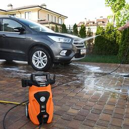 Мойка высокого давления DAEWOO DAW 400 работает на электрическом двигателе с мощностью 1,5 кВт. Агрегат оборудован армированным шлангом для работы под высоким давлением. Помпа, изготовленная из алюминия, защищена от ржавчины. Механический фильтр очищает подаваемую воду от твердых частиц, что позволяет избежать повреждения очищаемой поверхности. Длина шланга и длина кабеля составляют 5 метров, что повышает возможность передвижения пользователя с мойкой по участку. Для удобства транспортировки мойка оборудована колесами, крюком для крепления кабеля питания и рукояткой для крепления пистолета. Двойная изоляция корпуса мойки от электропроводящих составляющих гарантирует ее электробезопасность. Встроенная автоматическая система останавливает работу оборудования при перегреве двигателя. Срок эксплуатации мойки составляет 5 лет при своевременном прохождении технического обслуживания.