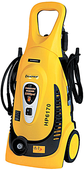 Автомойка Champion HP 6170 – самая мощная автомойка высокого давления фирмы Champion представленная в нашем магазине. Champion HP 6170 обладает двигателем с впечатляющей мощностью в 1,7 кВт и не менее впечатляющей частотой вращения в 2800 оборотов в минуту. Для его работы необходимо подключить мойку к сети с напряжением 220 вольт (50 Гц). Мойка выполнена в эргономичном ключе – имеется большая и очень удобная ручка для переноски, все переключатели крупные, легко нажимаются и имеют защиту от влаги и брызг. Имеются отсек, в который можно поставить пистолет высокого давления на время перерыва в работе или длительного хранения устройства. Есть два продуманных кронштейна для хранения в виде смотки шланга и сетевого кабеля. Сетевой шнур и шланг высокого давления имеют длину пять метров, что избавляет от необходимости постоянного перемещения автомойки. Но и с этим проблем тоже нет – вес устройства чуть менее 13 килограмм, имеются чувствительные колеса и удобная ручка для переноски. Сам корпус имеет традиционный для фирмы Champion аэродинамичный и стильный дизайн в ярких цветах, широко используются вставки из формованной резины, предотвращающие скольжение и случайное нажатие кнопок. Номинальное давление воды в устройстве – одиннадцать МПа, максимальное выходное давление может достигать 150 Бар. Производительность устройства, заявленная производителем, составляет 402 литра в час. Этого хватит для любых видов работ в гараже, дома или на даче. А для очистки особенно загрязнённых участков имеется возможность выдачи горячей воды (до 60 градусов) или использование смеси воды с моющим средством. Для моющего средства в устройстве предусмотрен бак ёмкостью в два литра. Устройство обладает неплохой продуманностью и не доставит своему владельцу и окружающим особых хлопот. Расход воды не превышает 7 литров в минуту, что характеризует мойку как относительно экономичную.