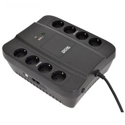 Устройство имеет восемь евророзеток с горизонтальным расположением: четыре с батарейной поддержкой и столько же с фильтрацией помех. Микропроцессор обеспечивает длительный срок службы благодаря новому алгоритму зарядки с учётом температурной компенсации, а также осуществляет полный цифровой контроль, автоматическую подзарядку, диагностику и проверку батарей. Прибор оснащён автоматическим регулированием напряжения (AVR), функцией холодного старта, защитой от молнии, короткого замыкания и перегрузок.