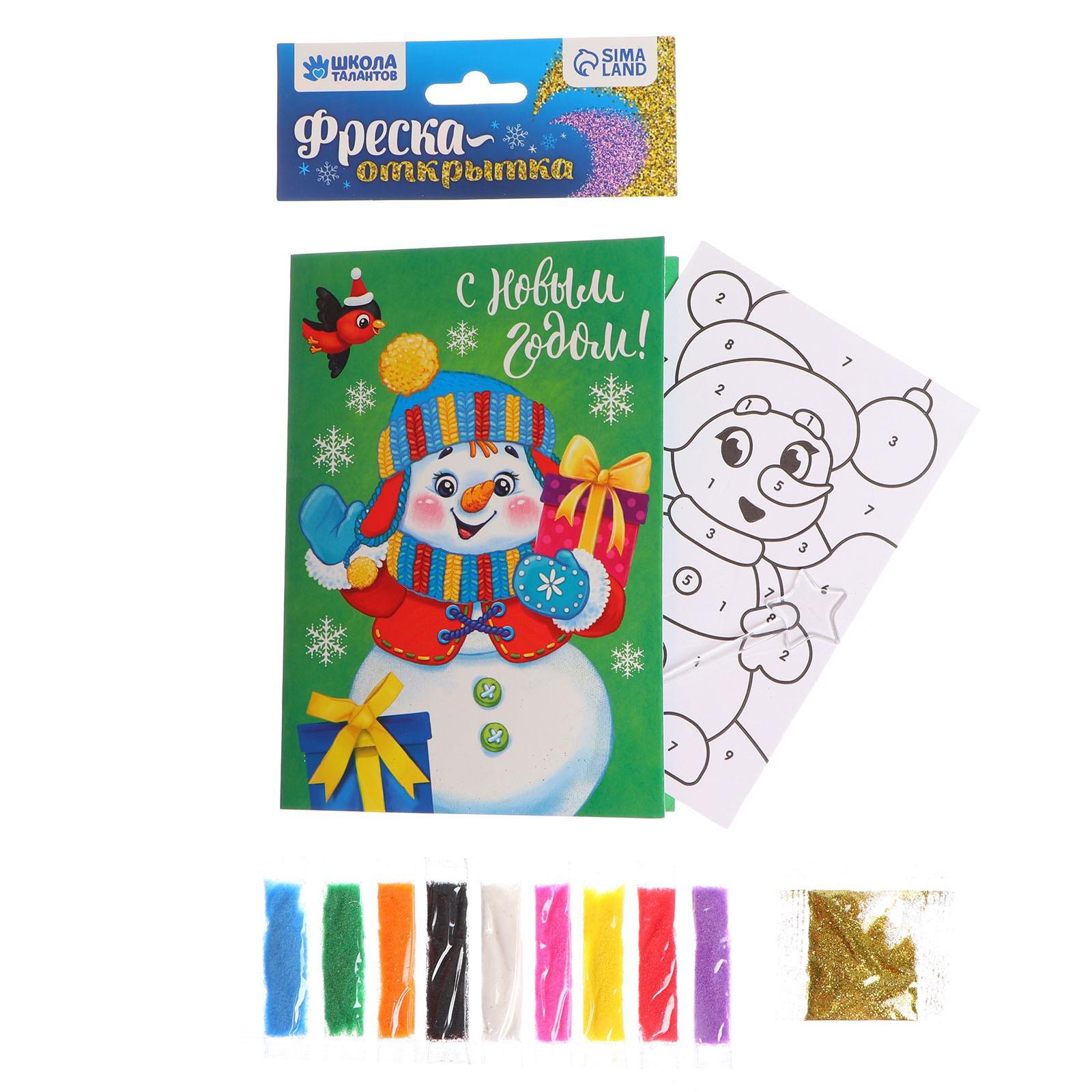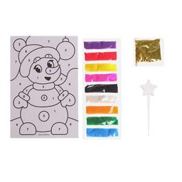 Создание фресок — увлекательный вид творчества, который понравится каждому ребёнку. Клеевая основа защищена специальным слоем бумаги, куда нанесены прорезные контуры. Каждый цвет находится в своей зоне: отделяйте верхний слой с помощью стеки, засыпайте элементы песком и добавляйте блёстки согласно инструкции из набора.