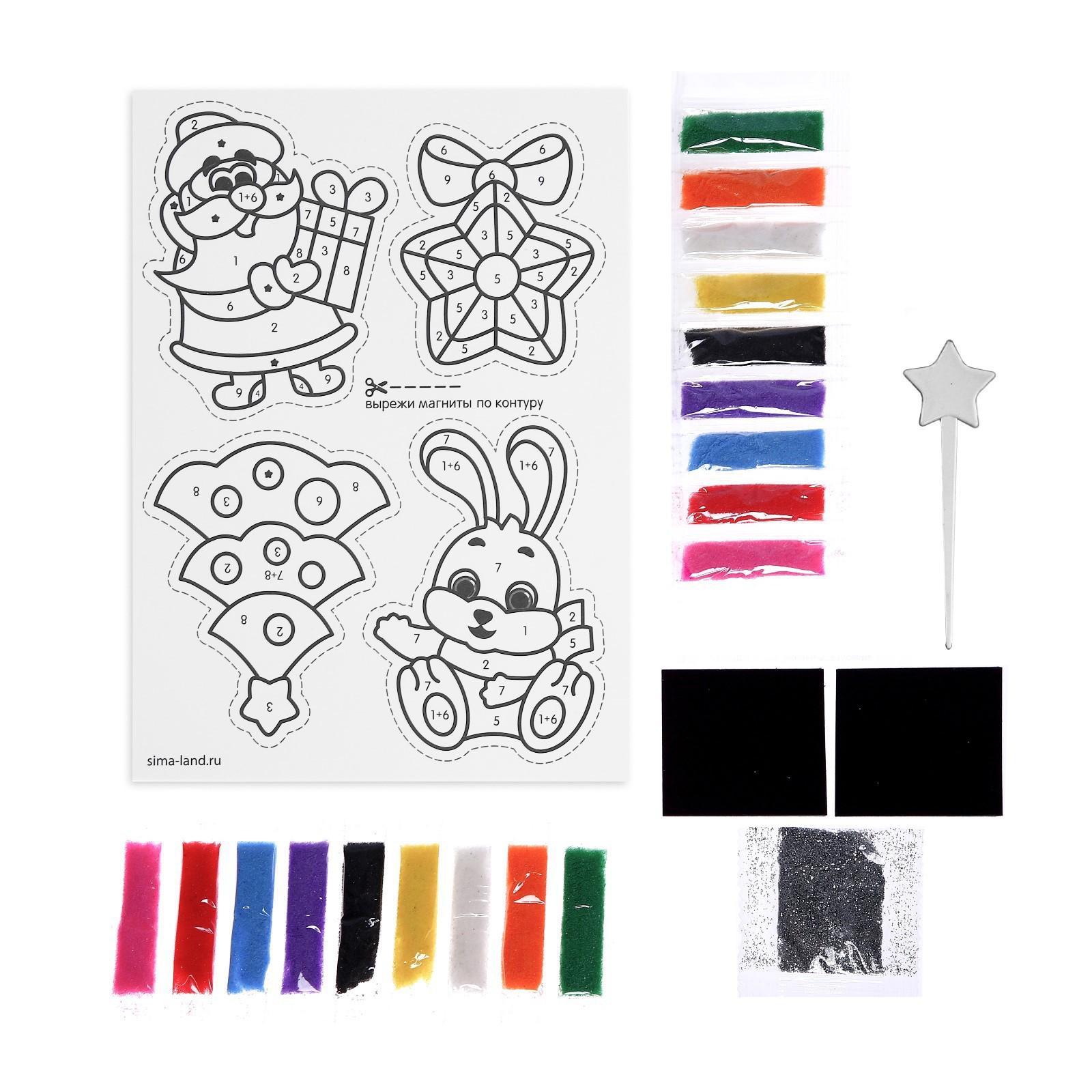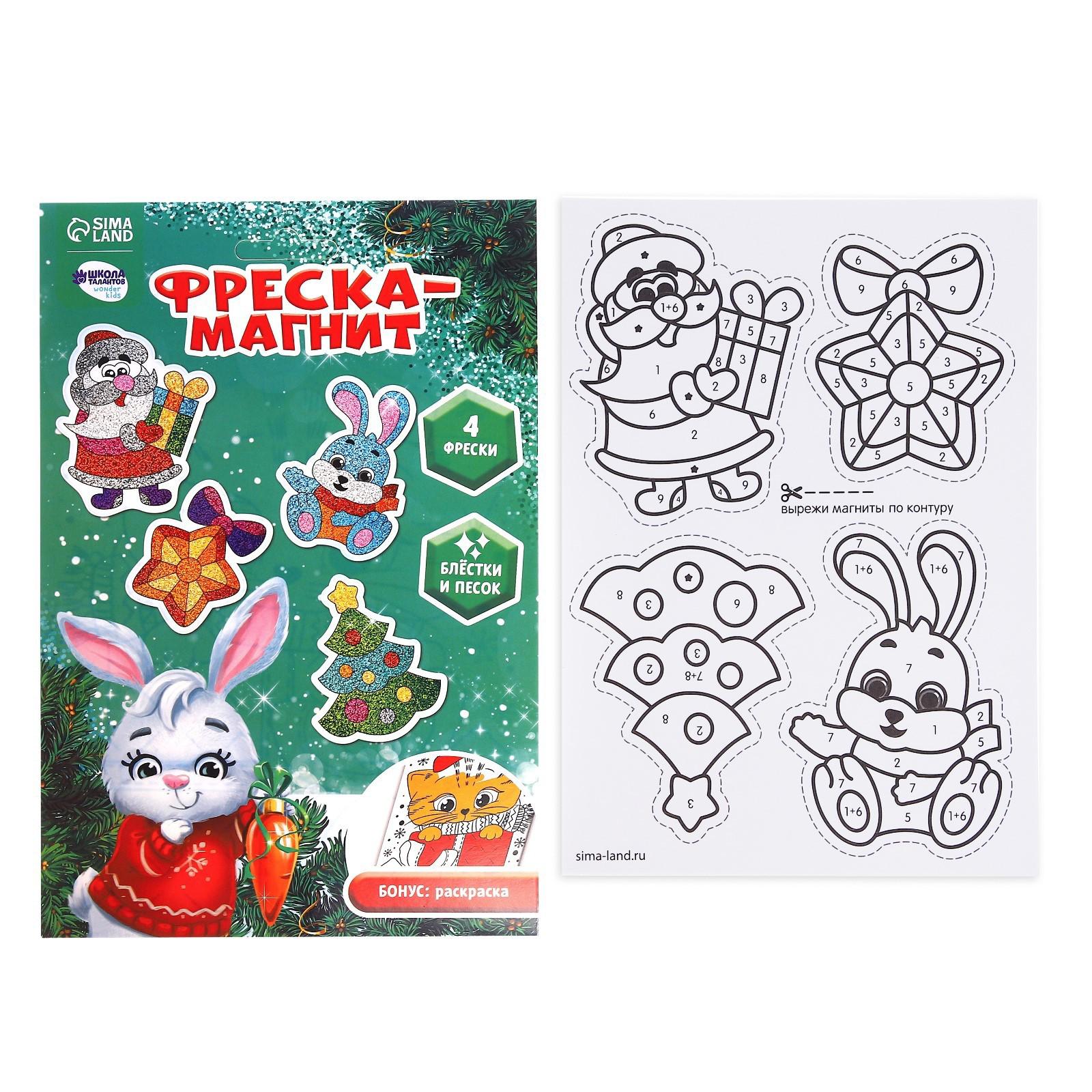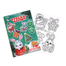 Новогодняя фреска на магните «Дед Мороз и зайка», набор 4 шт.