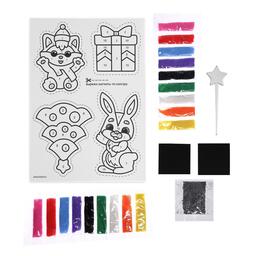 Фреска песком — увлекательный вид творчества, который понравится ребёнку. Клеевая основа защищена специальным слоем бумаги, куда нанесены прорезные контуры. Каждый цвет находится в своей зоне: отделяйте верхний слой с помощью стеки и засыпайте элементы песком.