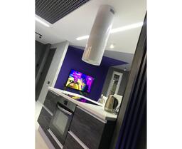 Может устанавливаться на островной кухне. Эта модель работает в двух режимах: отвода (при подключении вытяжки к системе вентиляции) и рециркуляции (при использовании сменного угольного фильтра в вытяжке).