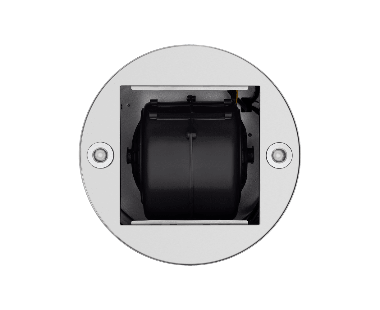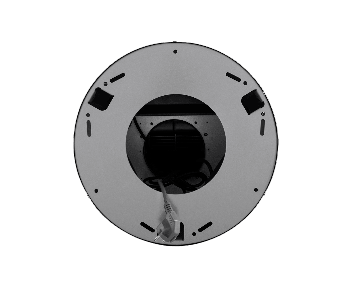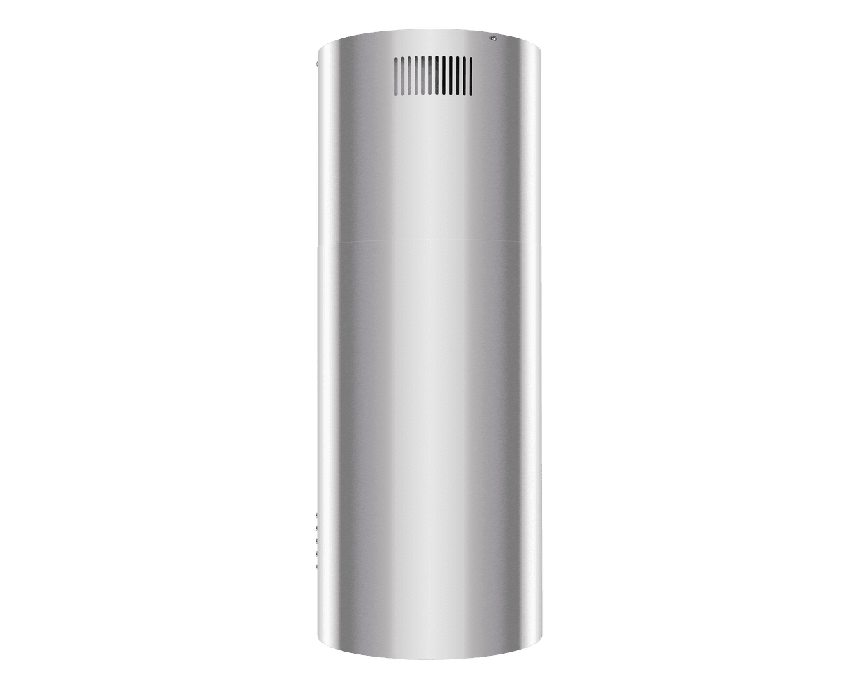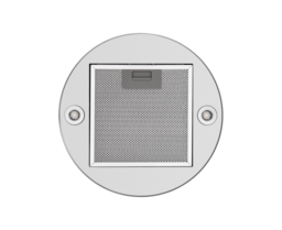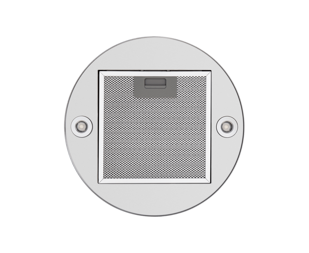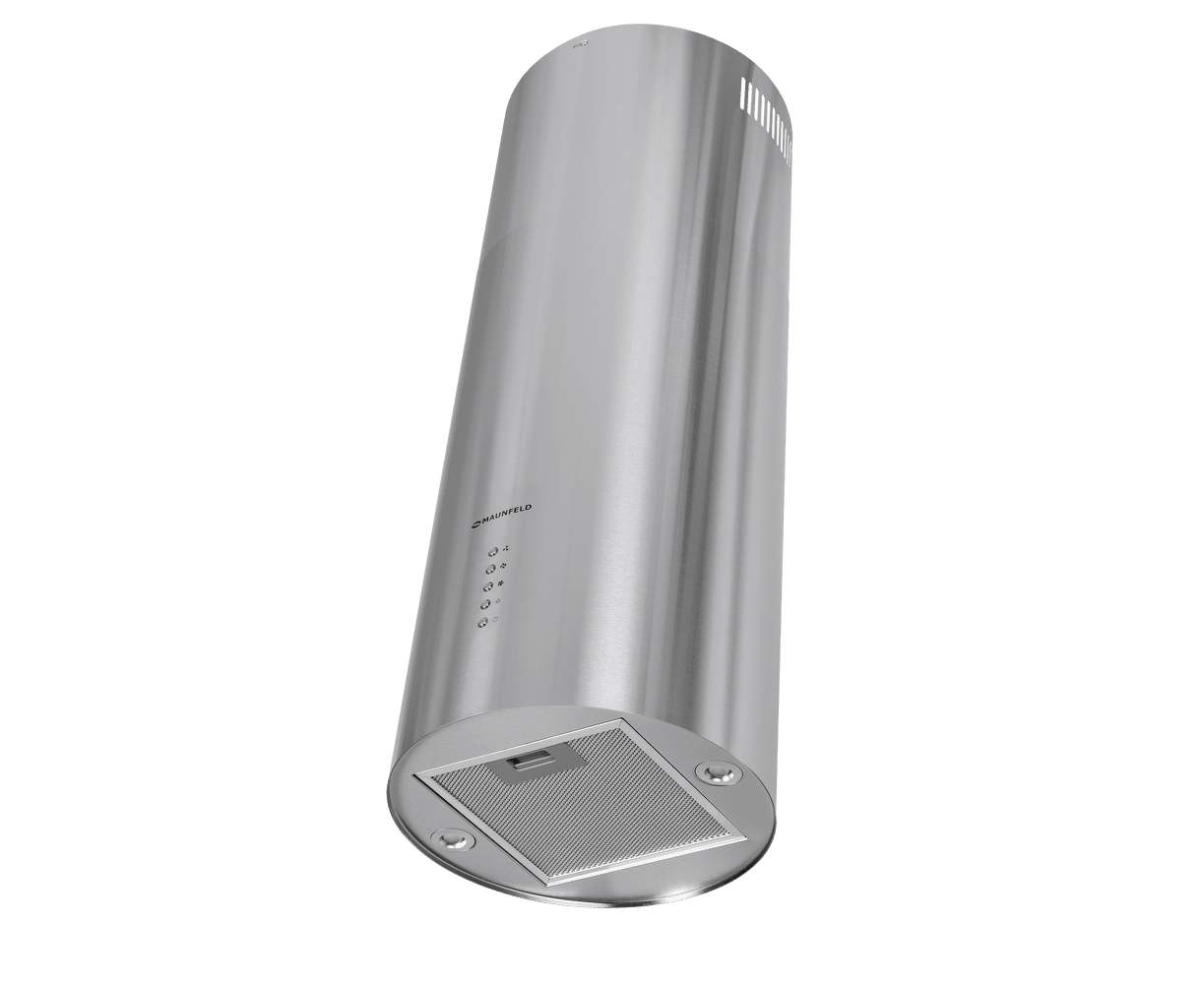 Корпус цилиндрической формы, выполненный из нержавеющей стали с термостойким покрытием черного цвета, крепится на потолок над поверхностью плиты. Алюминиевый многослойный жироулавливающий фильтр находится в нижней части вытяжки.