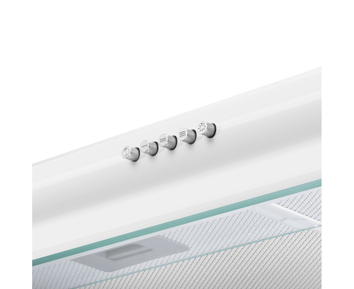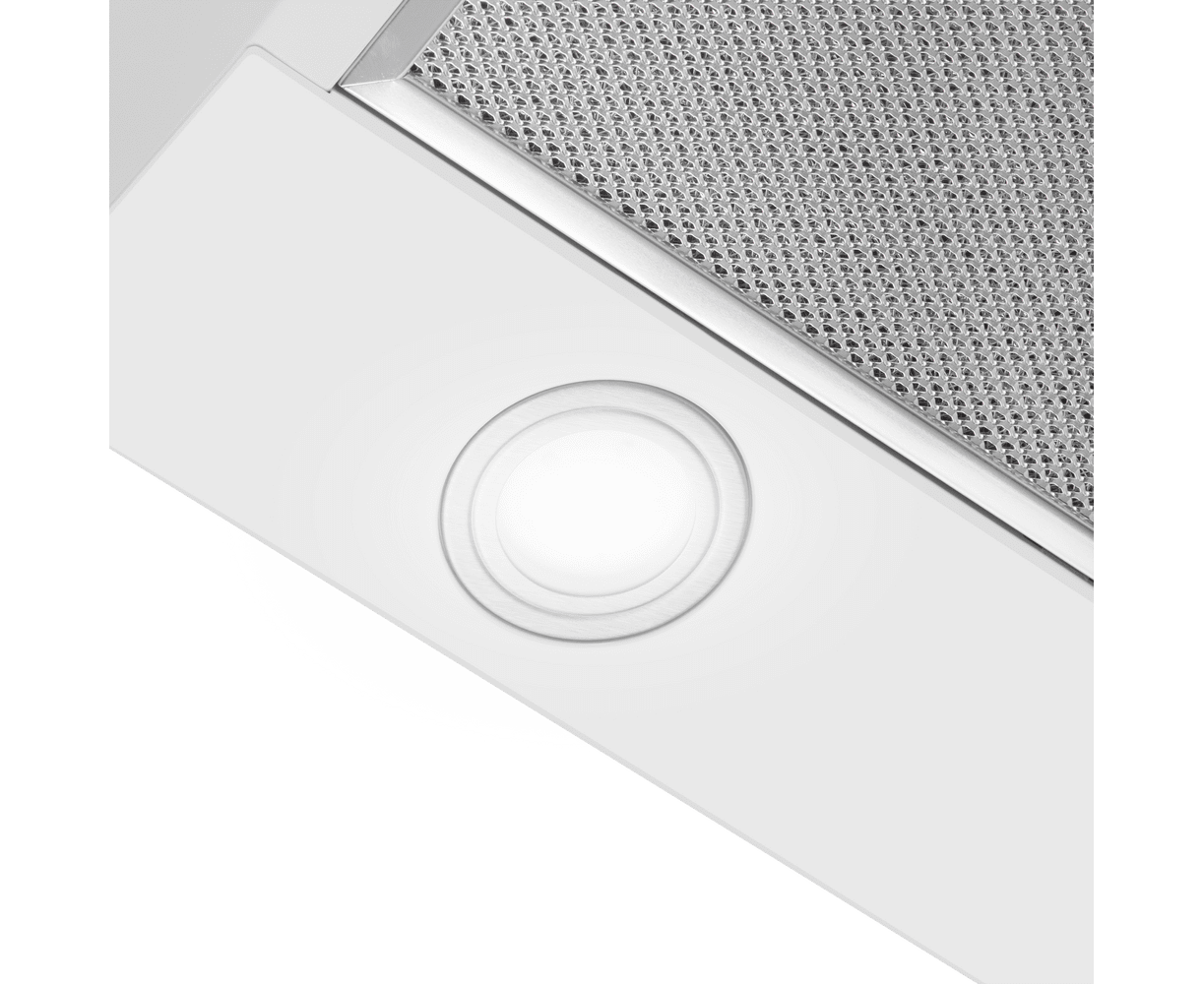 Кнопочное управление, расположенное на торце вытяжки, позволяет выбрать одну из 3-х скоростей работы вентилятора и включить освещение (две LED-лампы по 1 Вт каждая).