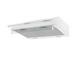 Классическая подвесная кухонная вытяжка шириной 60 см со стеклянным козырьком. Подойдет для небольшой кухни (до 15 кв. м). Монтируется на стену над поверхностью плиты. Работает в двух режимах – отвода (при подключении к системе вентиляции) и рециркуляции (при использовании сменного угольного фильтра).