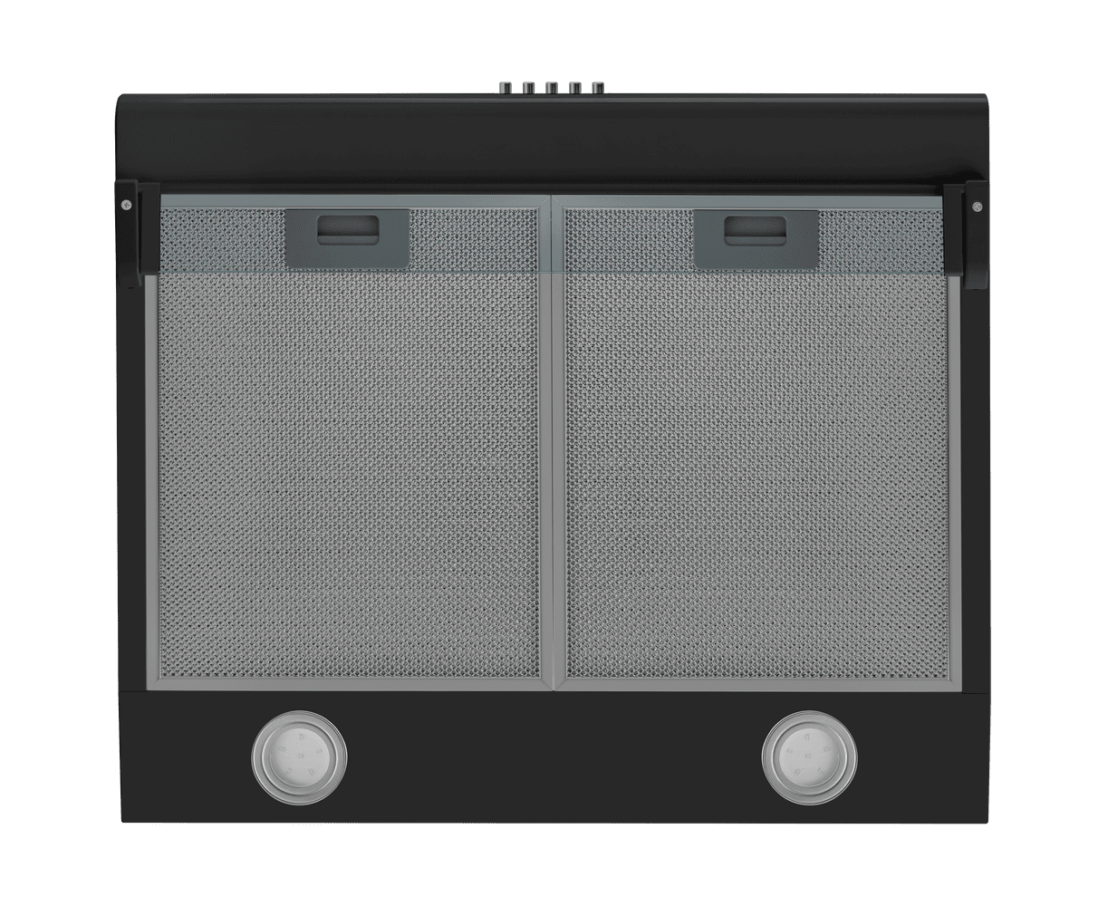 Корпус сделан из нержавеющей стали с термостойким покрытием из черной эмали, которое позволяет сохранить внешний вид вытяжки даже при активной эксплуатации. В данной модели установлено 2 алюминиевых жироулавливающих фильтра, которые имеют продолжительный срок службы и эффективно очищают воздух. Они легко снимаются и полностью разбираются для чистки.