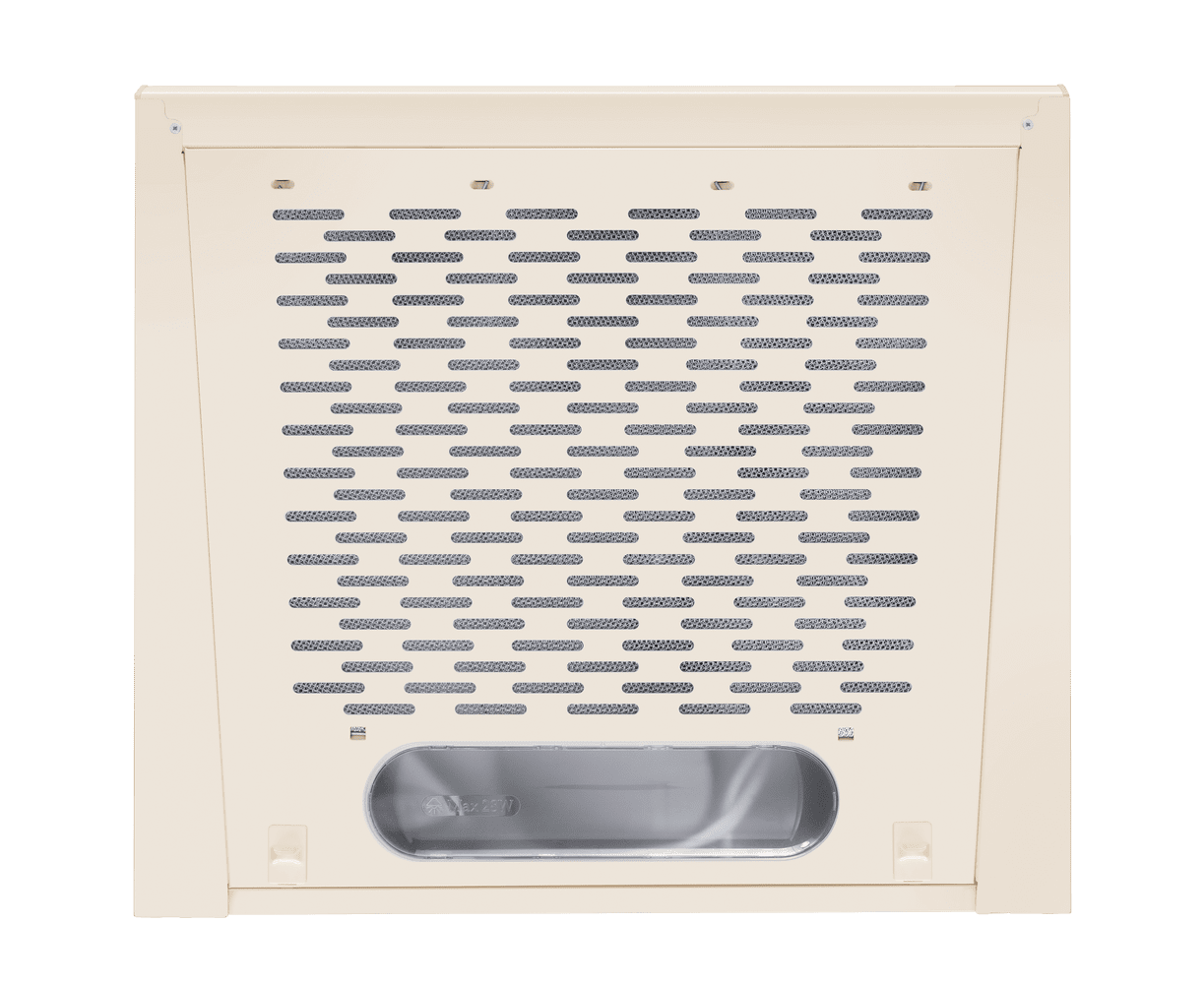 Вытяжка сделана из матированной нержавеющей стали. За съемной декоративной панелью скрыт алюминиевый жироулавливающий фильтр, который имеет продолжительный срок службы и эффективно очищает воздух. Фильтр можно легко снять и помыть.