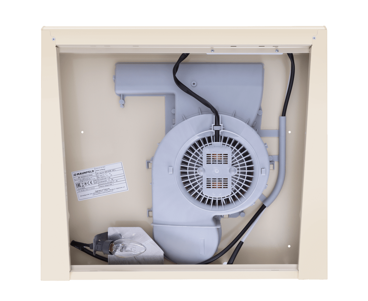 Мощность мотора – 118 Вт, максимальная производительность составляет 420 м3/ч. Уровень шума на максимальной скорости не превысит 49 дБ.