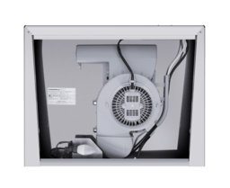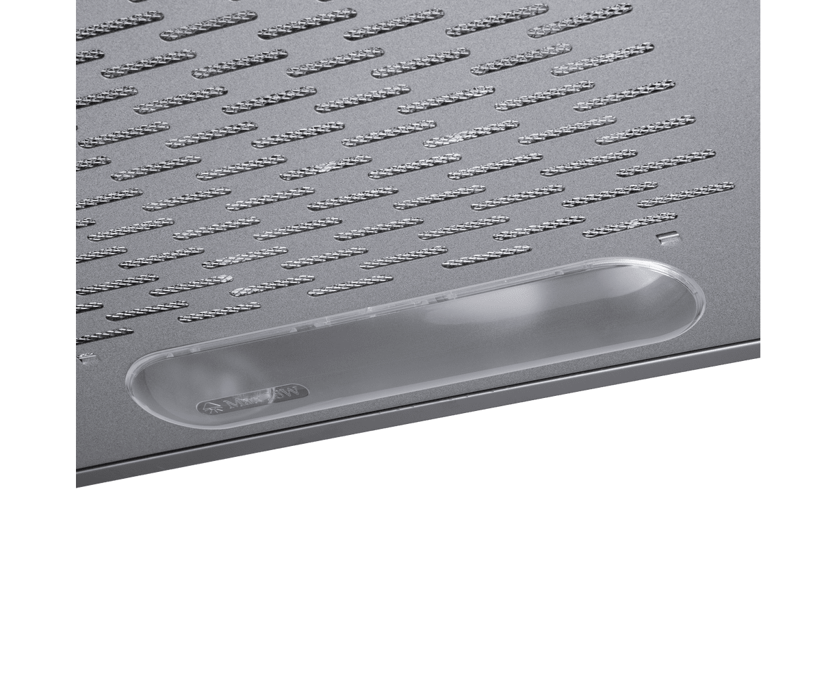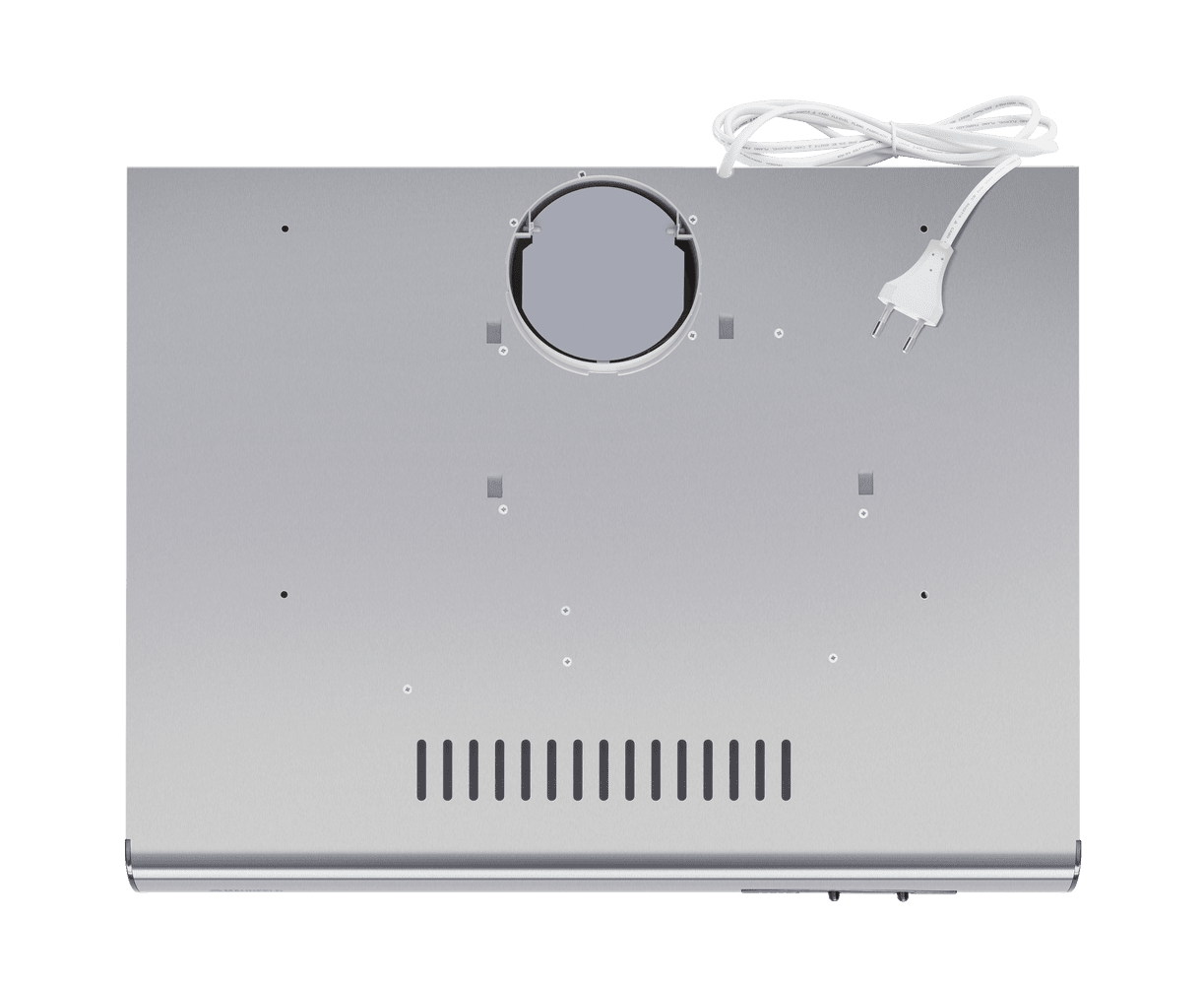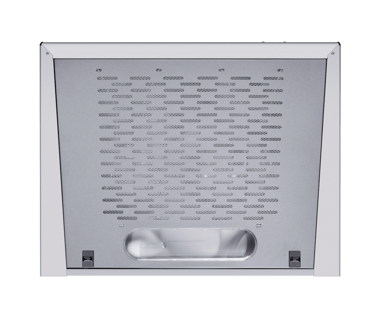 Корпус сделан из нержавеющей стали с термостойким покрытием из эмали, которое позволяет сохранить внешний вид вытяжки даже при активной эксплуатации. За съемной декоративной панелью скрыт алюминиевый жироулавливающий фильтр, который имеет продолжительный срок службы и эффективно очищает воздух.