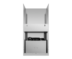 В зависимости от высоты потолка кухни, вы можете использовать основной корпус или прикрепить дополнительный кожух и получить вытяжку высотой 90 см.