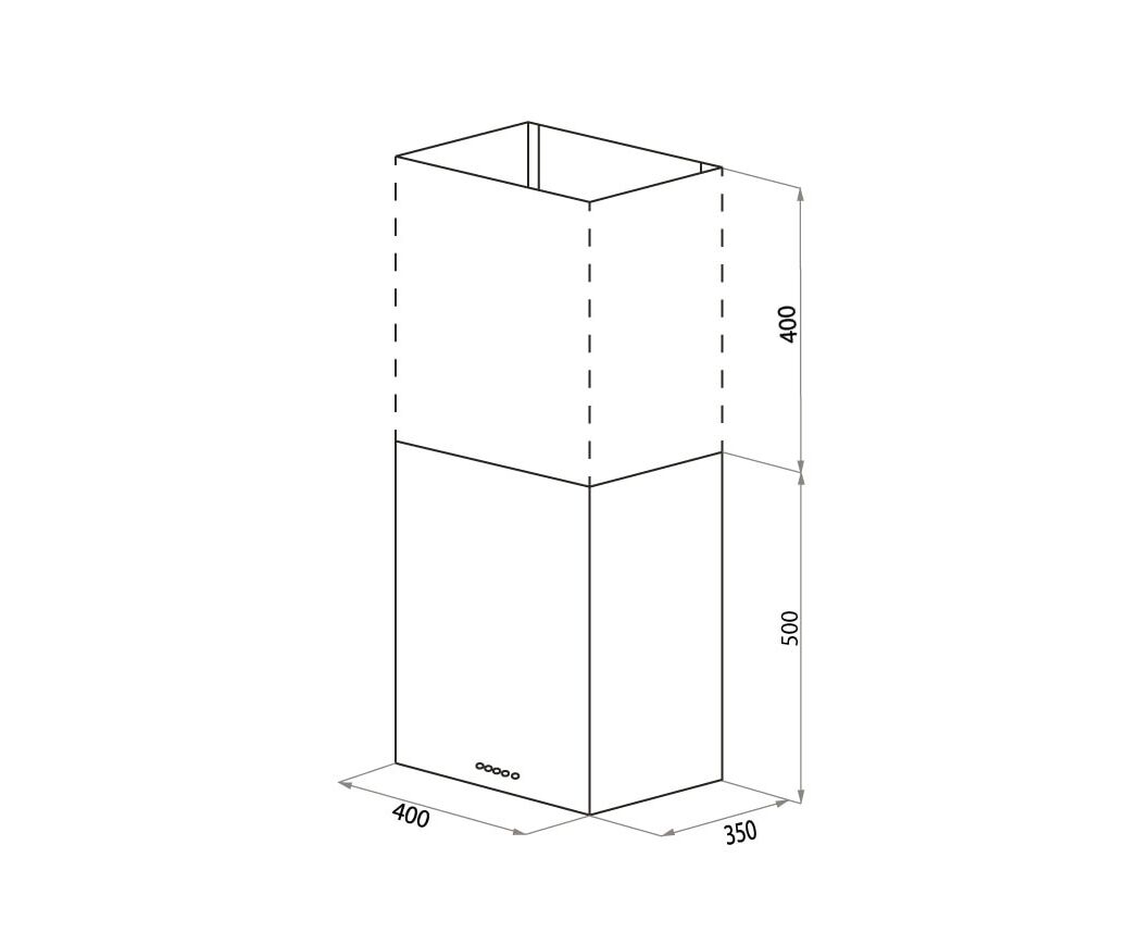 В зависимости от высоты потолка кухни, вы можете использовать основной корпус или прикрепить дополнительный кожух и получить вытяжку высотой 90 см.