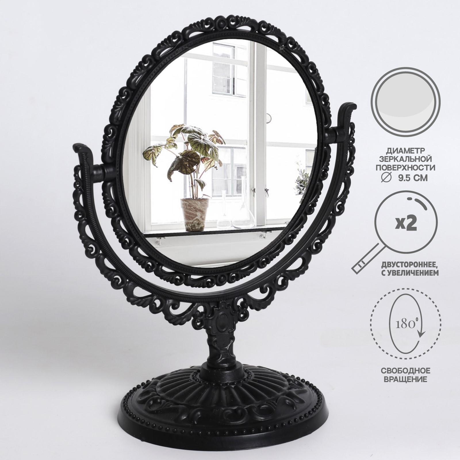 Зеркало настольное, двустороннее, с увеличением, d зеркальной поверхности 9,5 см, цвет чёрный