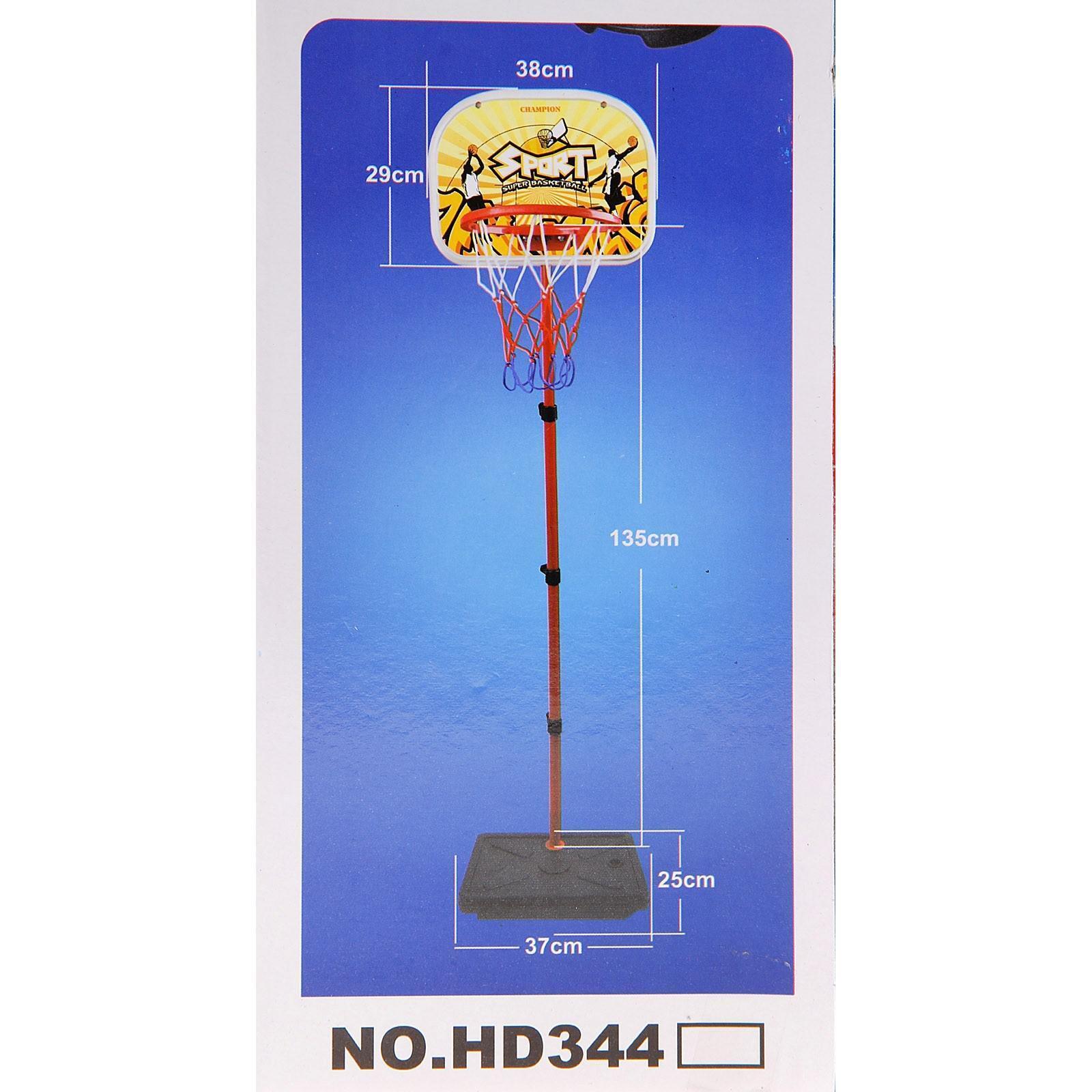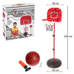 В комплект входит щит и кольцо на стойке, баскетбольный мяч подходящего размера и насос.