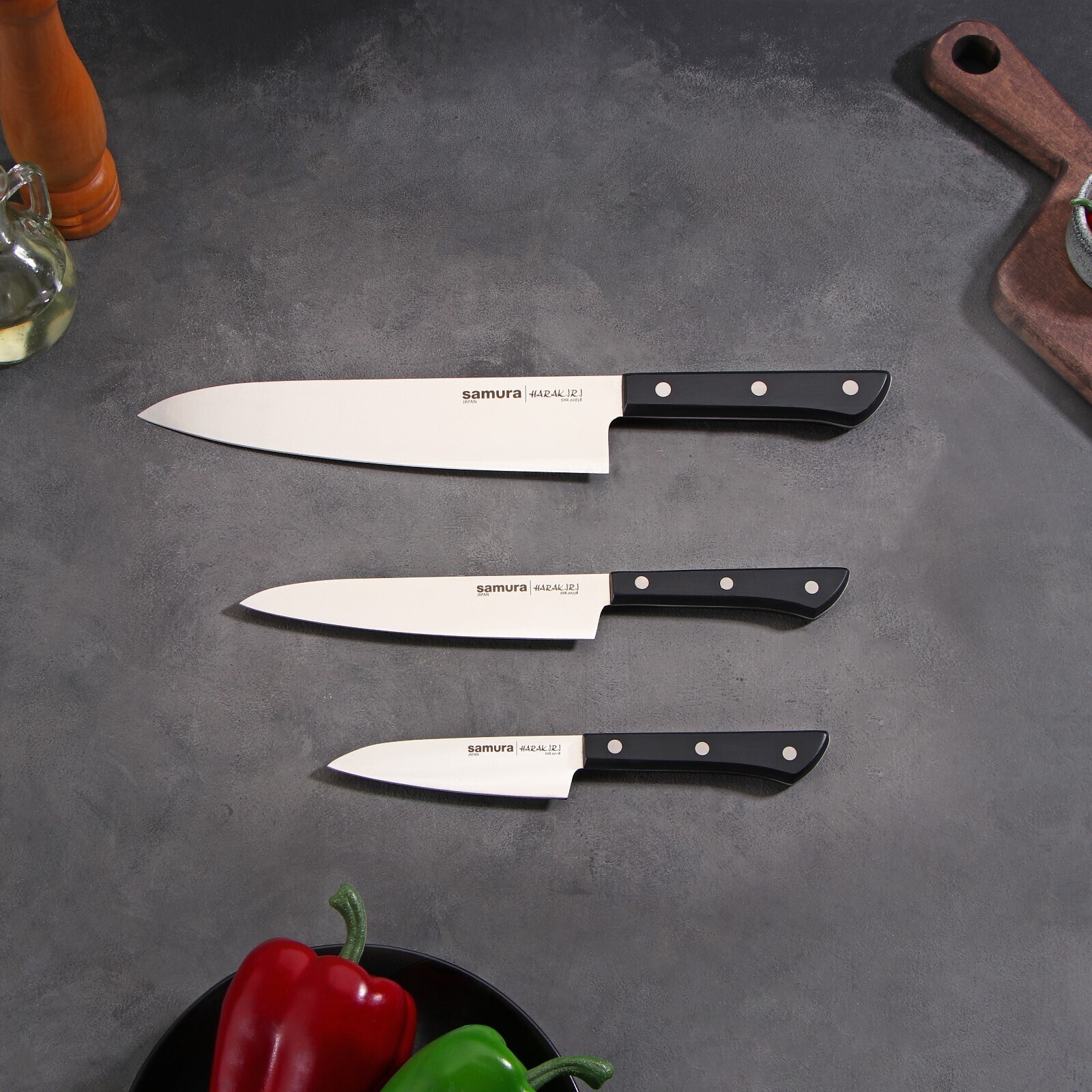 Набор ножей Samura HARAKIRI, 3 шт: лезвие 10 см, 15 см, 20 см, чёрная рукоять