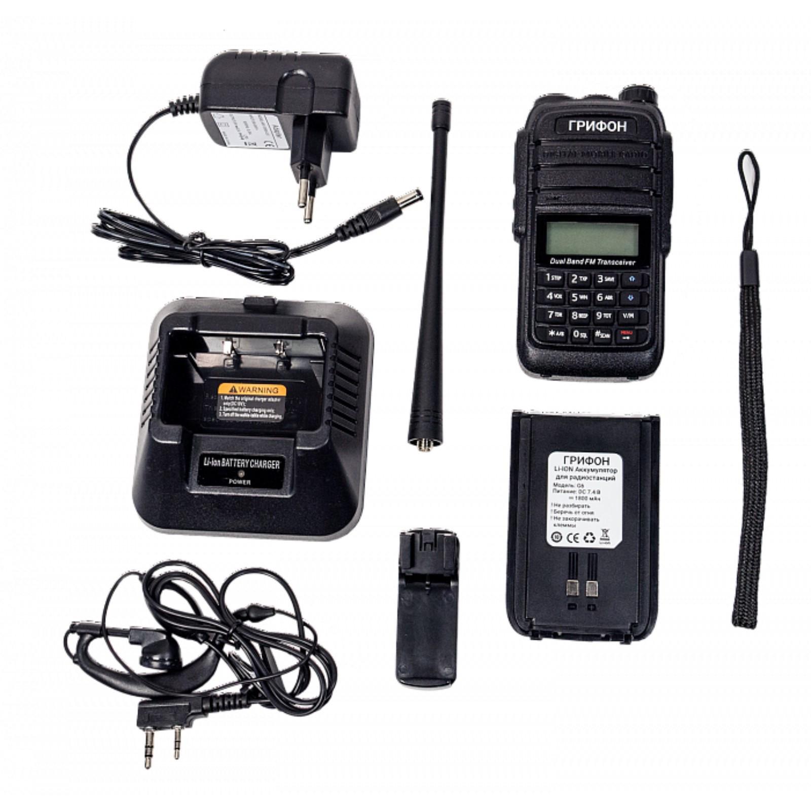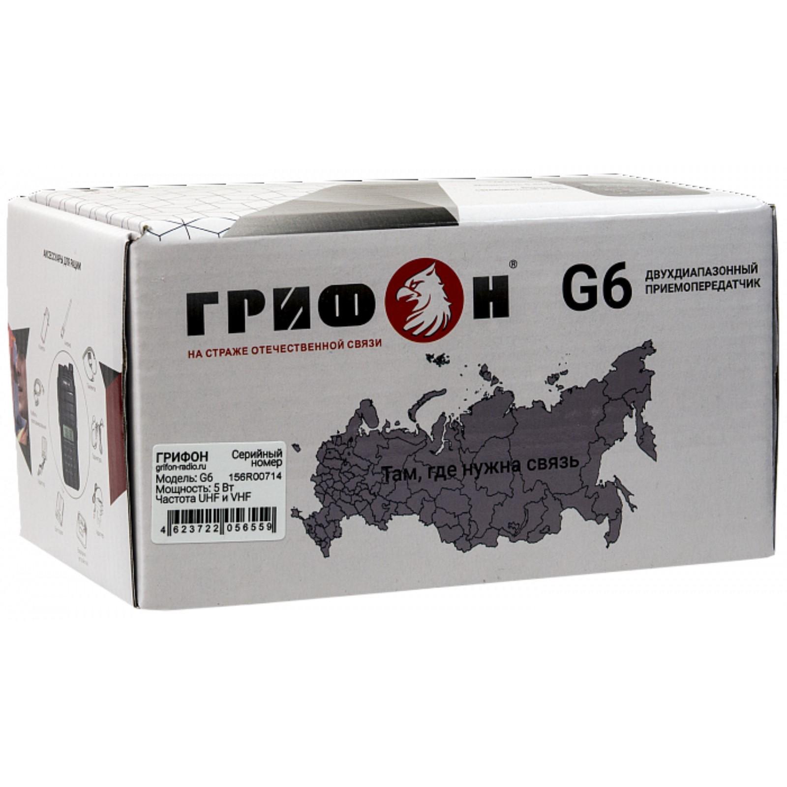 Портативная рация Грифон G-6, 128 каналов, 5 Вт, до 22.2 км, 400-520 МГц, 1800 мАч, черная 786007