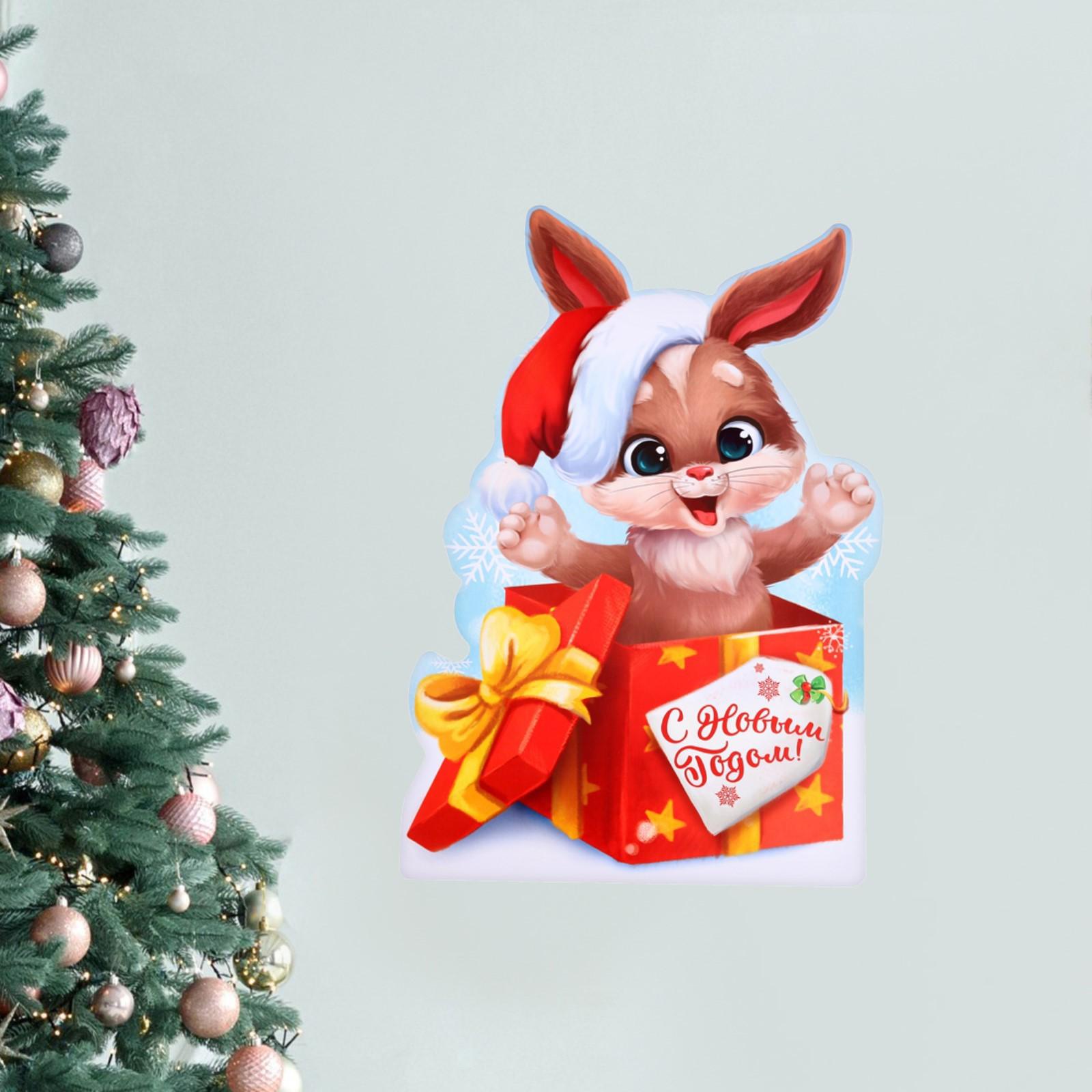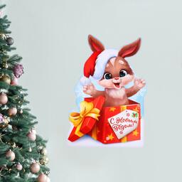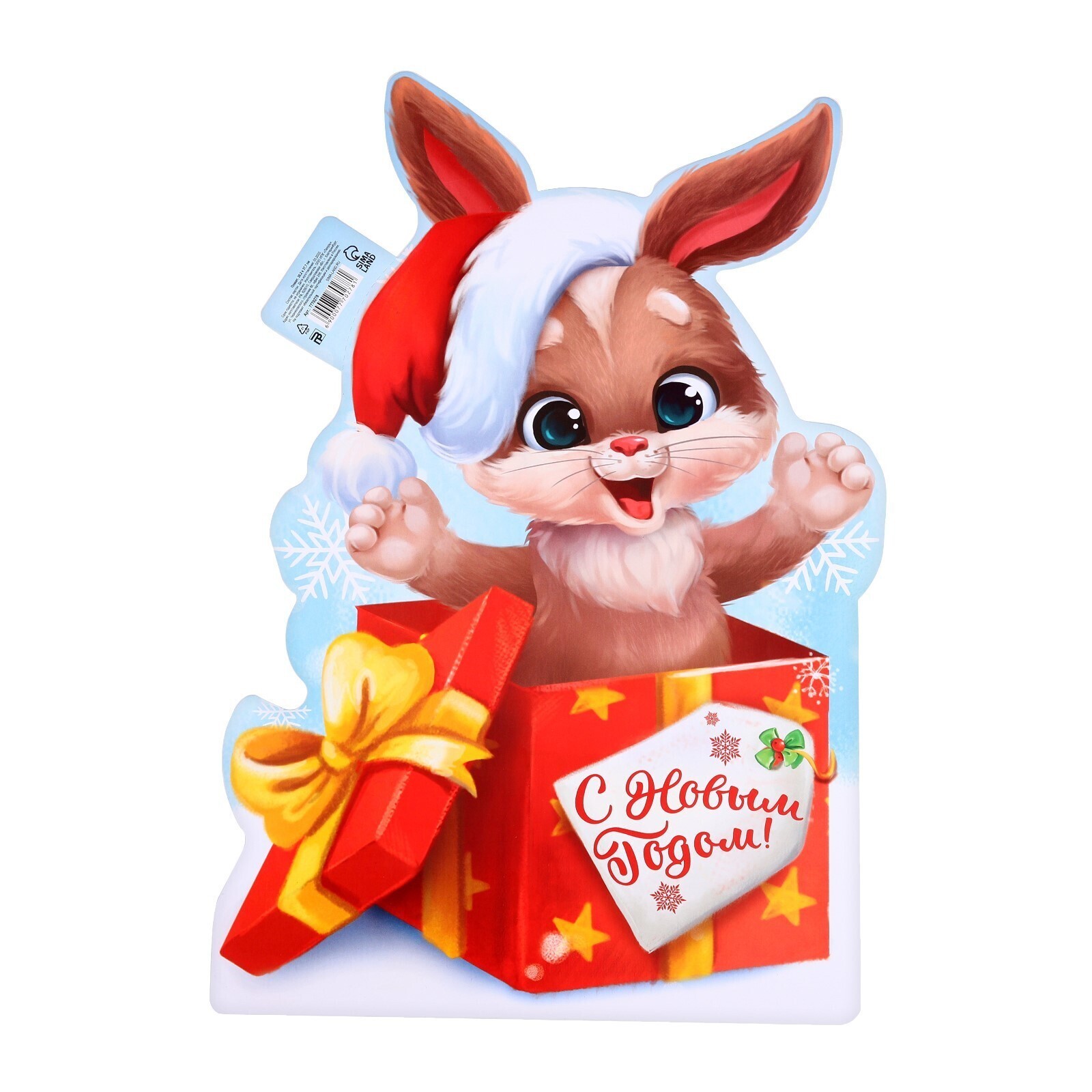Плакат «С новым годом», зайка в подарке, 26,2 х 37,7 см., плотность 115 гр/кв.м