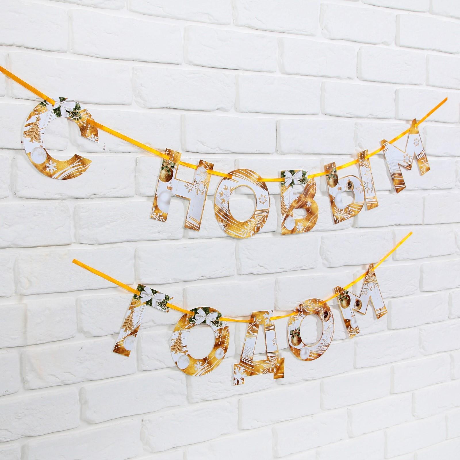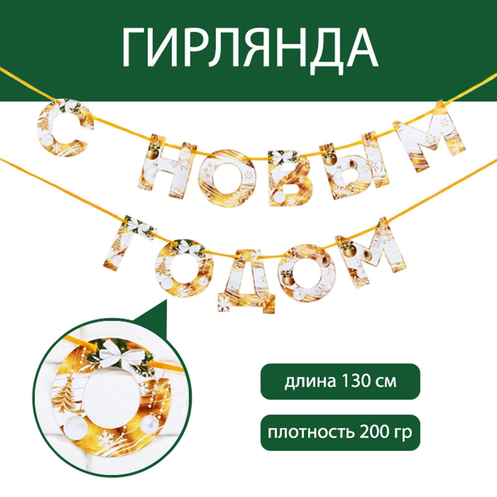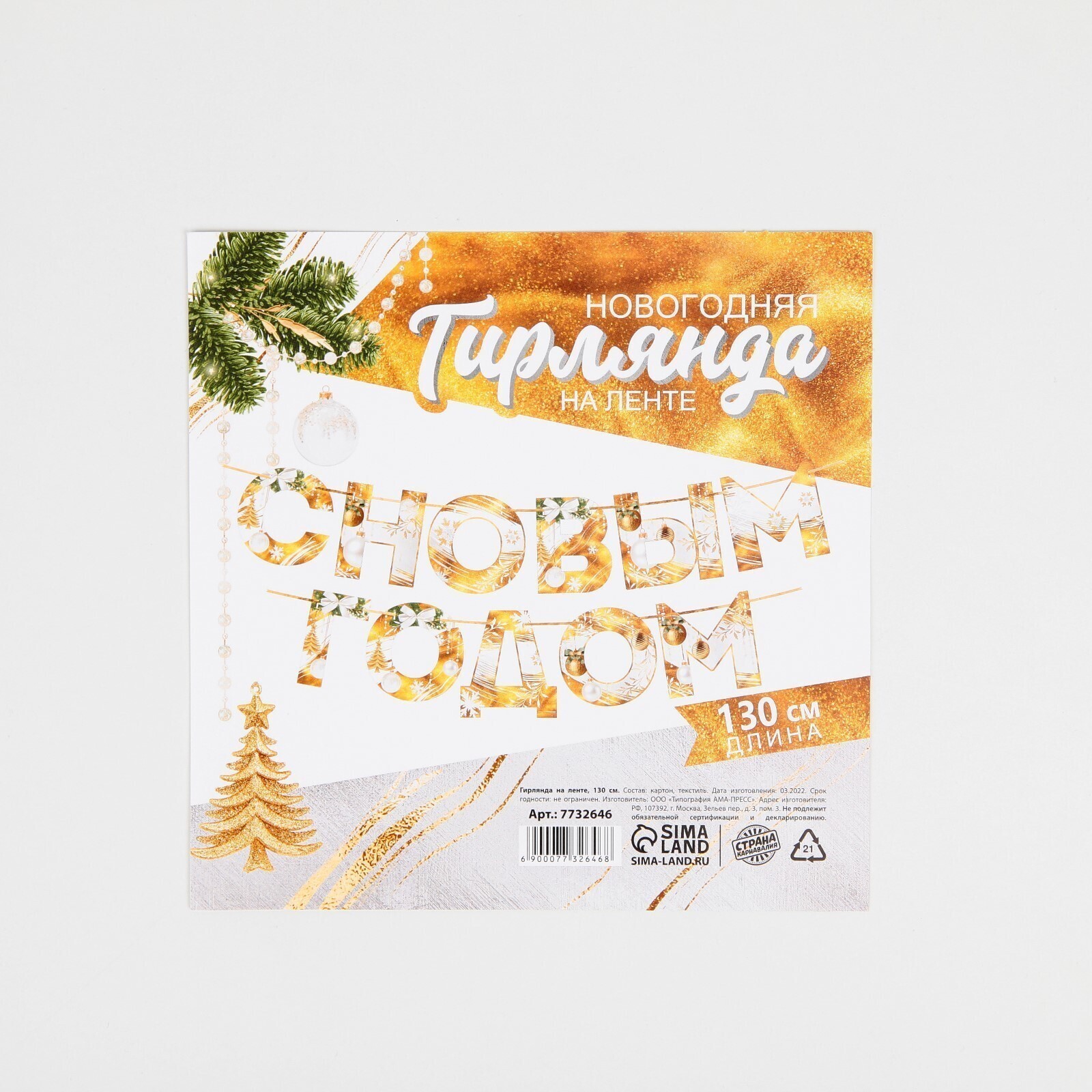 Гирлянда на ленте «С новым годом», бело/золотая, 130 см