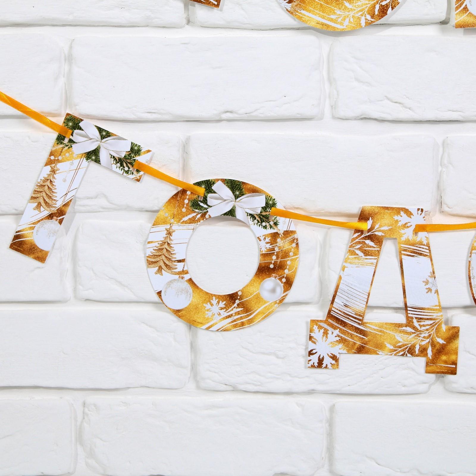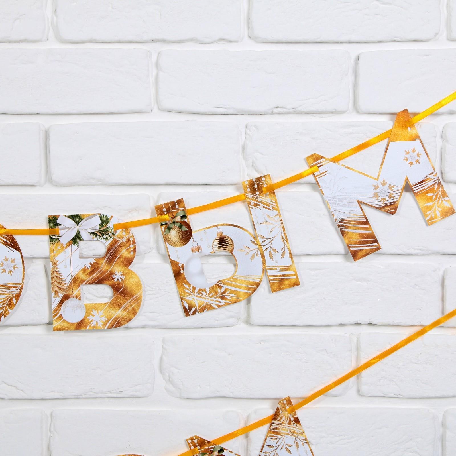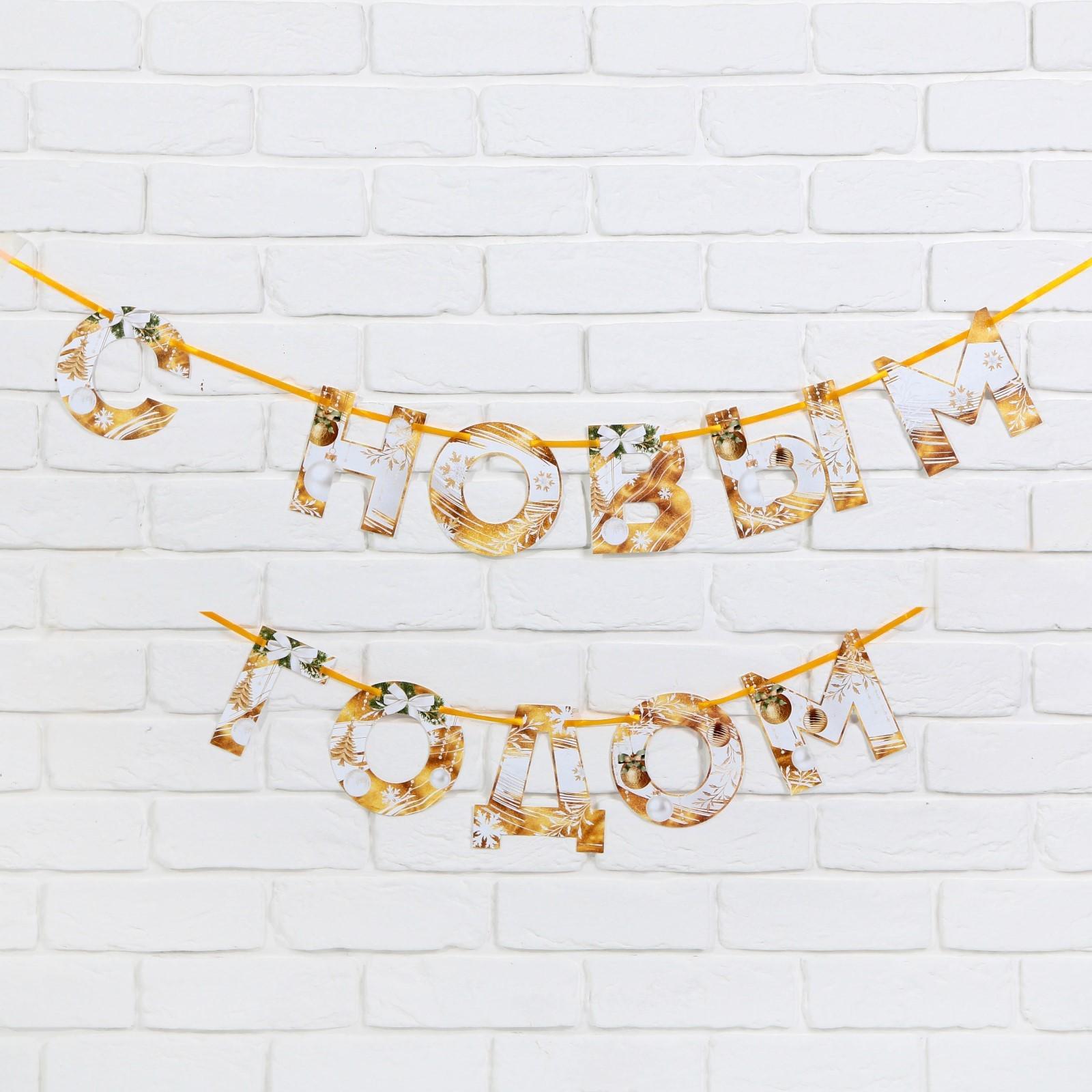Гирлянда на ленте «С новым годом», бело/золотая, 130 см