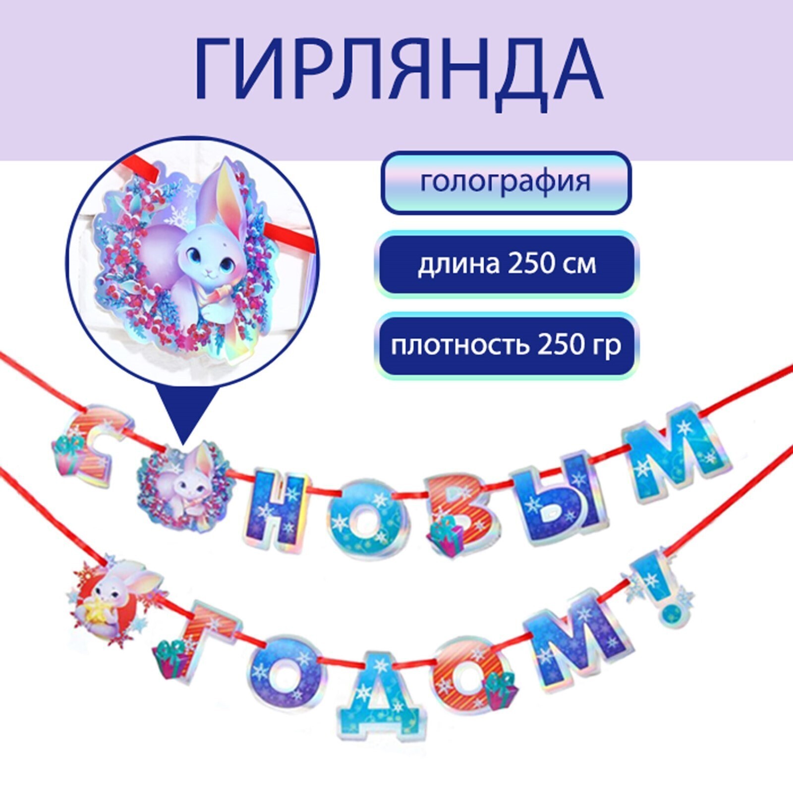 Гирлянда на ленте голография «С новым годом!», дл. 250 см.