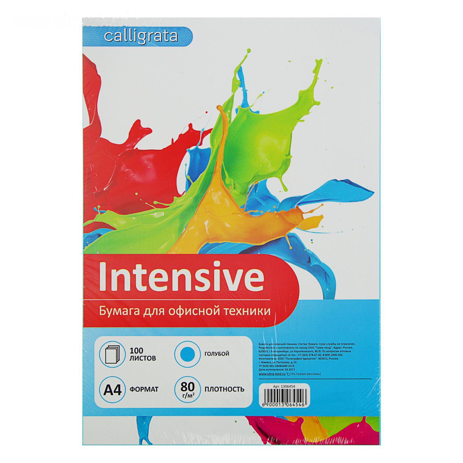 Бумага цветная А4, 100 листов Calligrata Интенсив, голубая, 80 г/м²