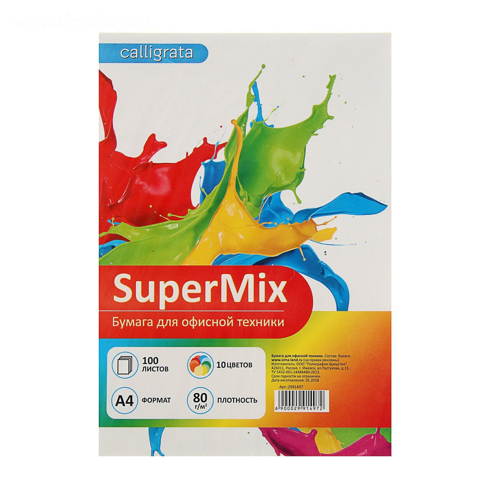 Бумага цветная А4, 100 листов Calligrata Mix, 10 цветов, тонированная в массе, 80 г/м²