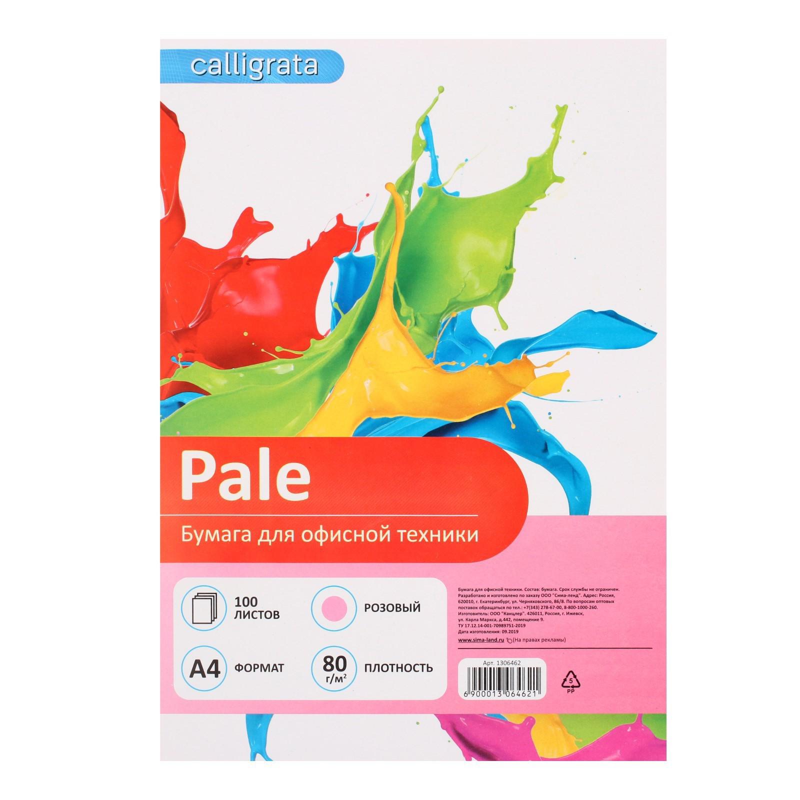 Бумага цветная А4, 100 листов Calligrata Пастель, розовая, 80 г/м²