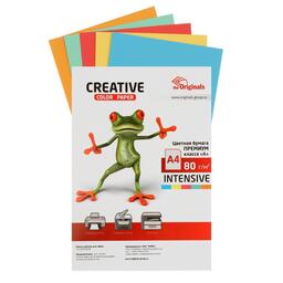 Бумага цветная А4, 100 листов "Креатив" Интенсив, 5 цветов, 80 г/м²