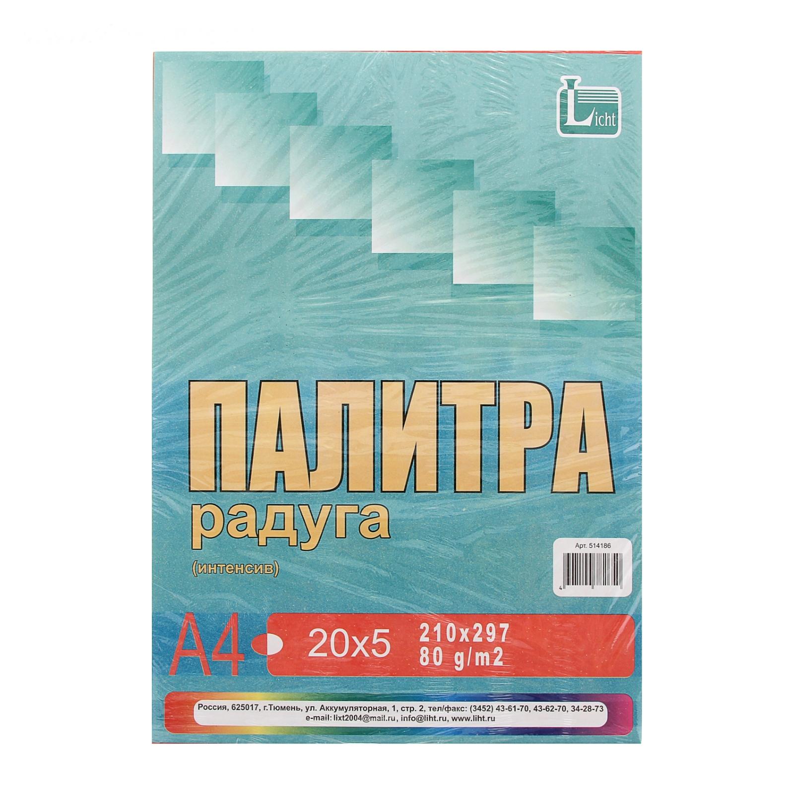 Бумага цветная А4, 100 листов "Палитра колор" Интенсив, 5 цветов, 80 г/м²