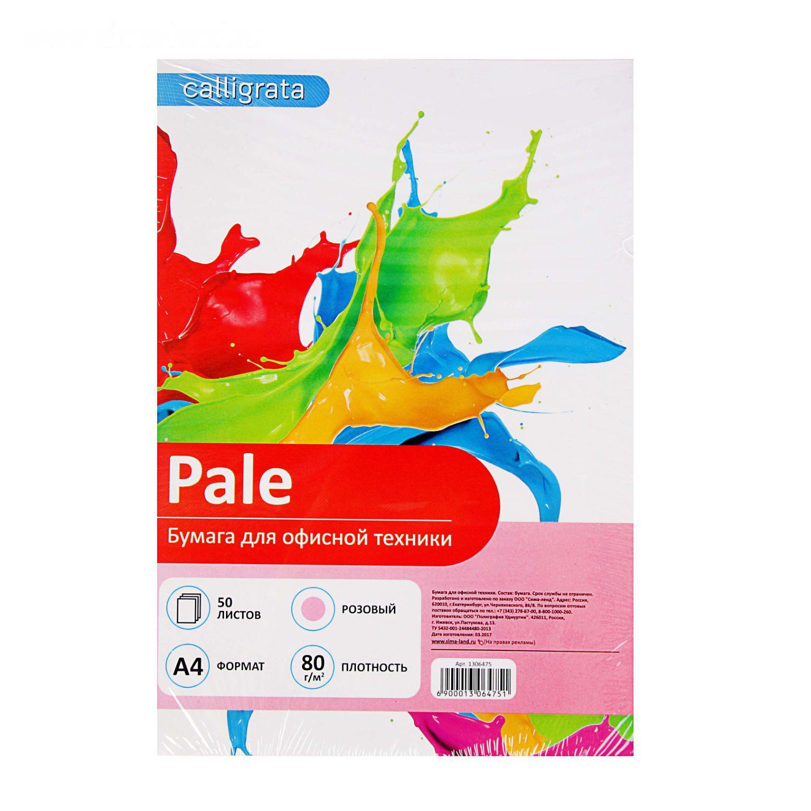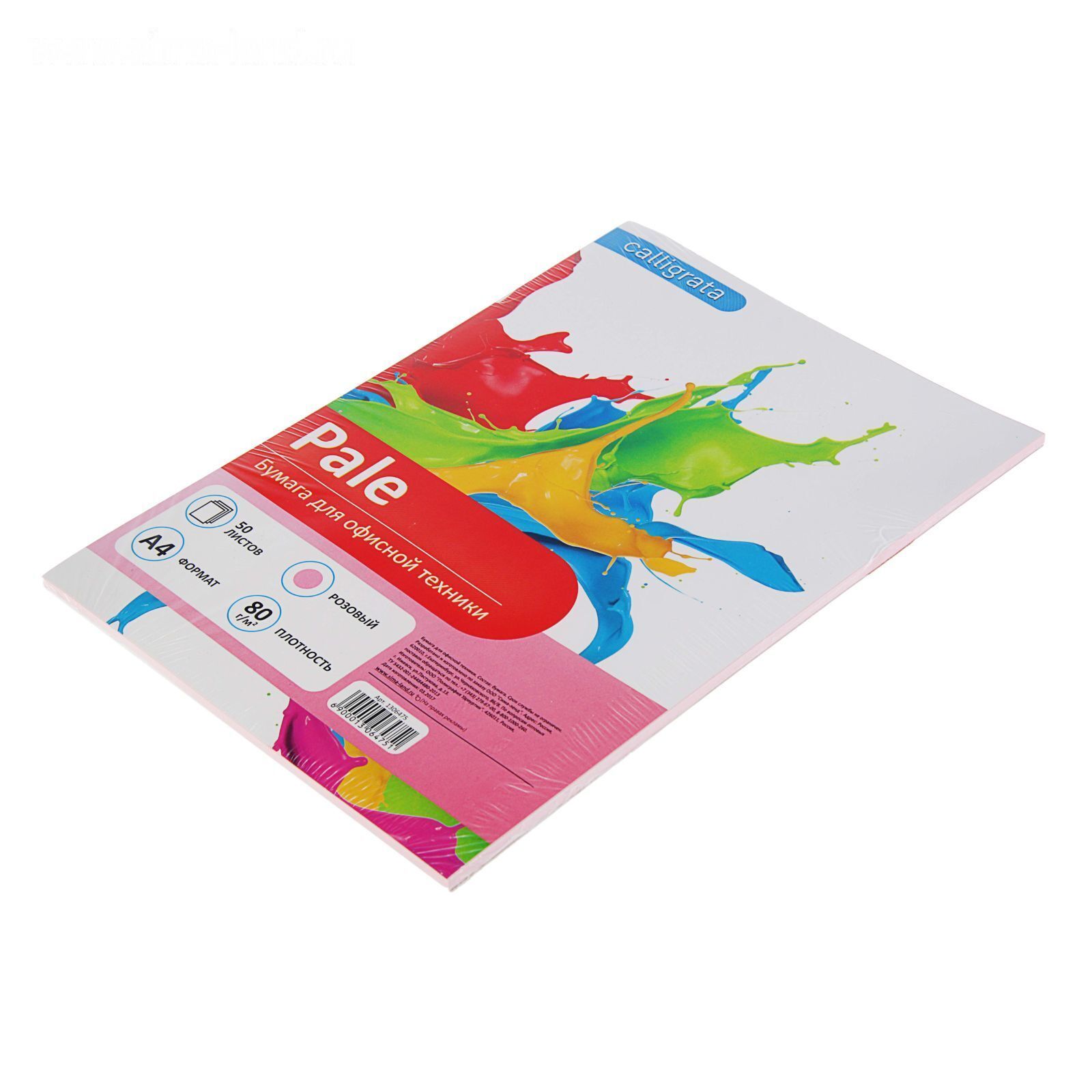 Бумага цветная А4, 50 листов Calligrata Пастель, розовая, 80 г/м²
