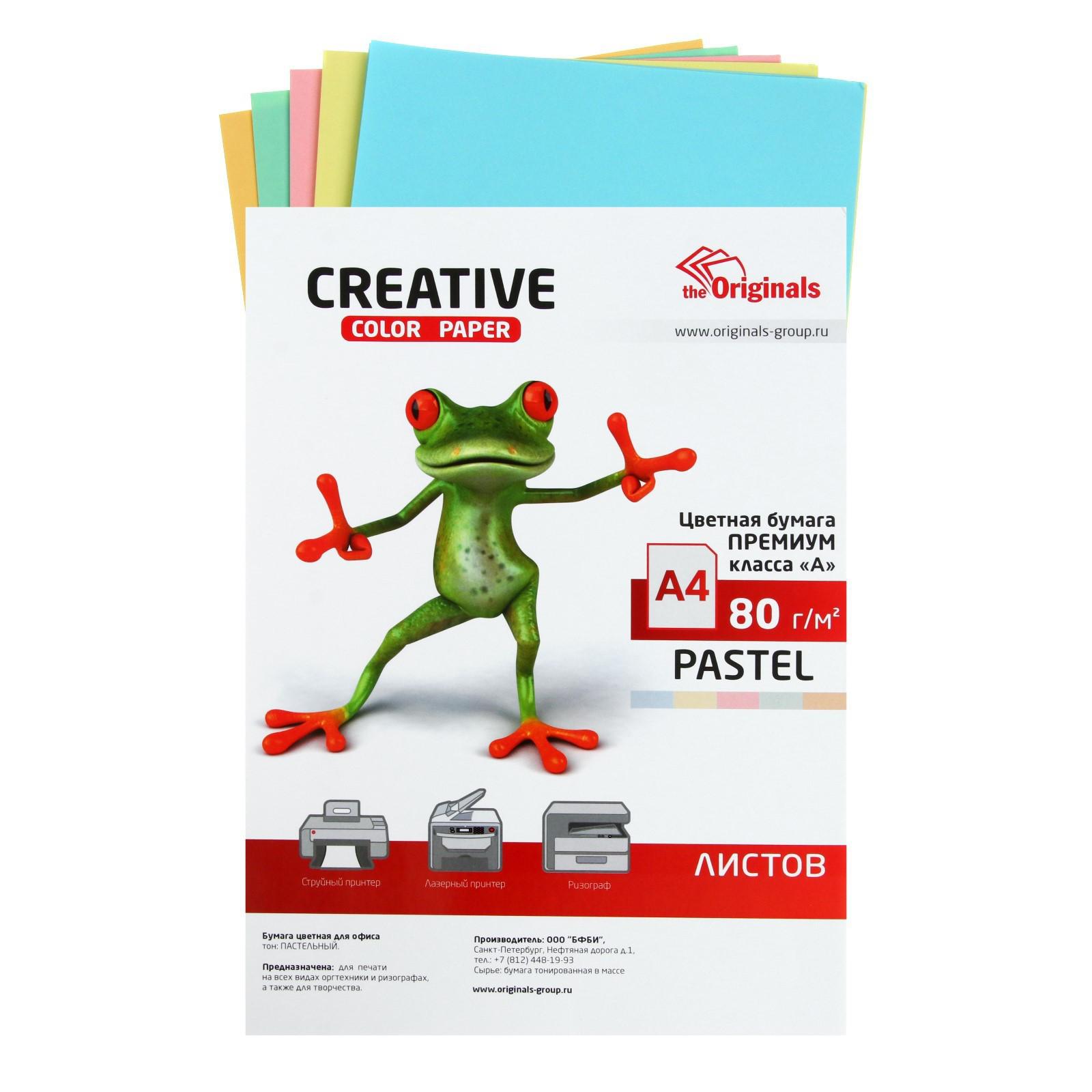 Бумага цветная А4, 50 листов "Креатив" Пастель, 5 цветов, 80 г/м²