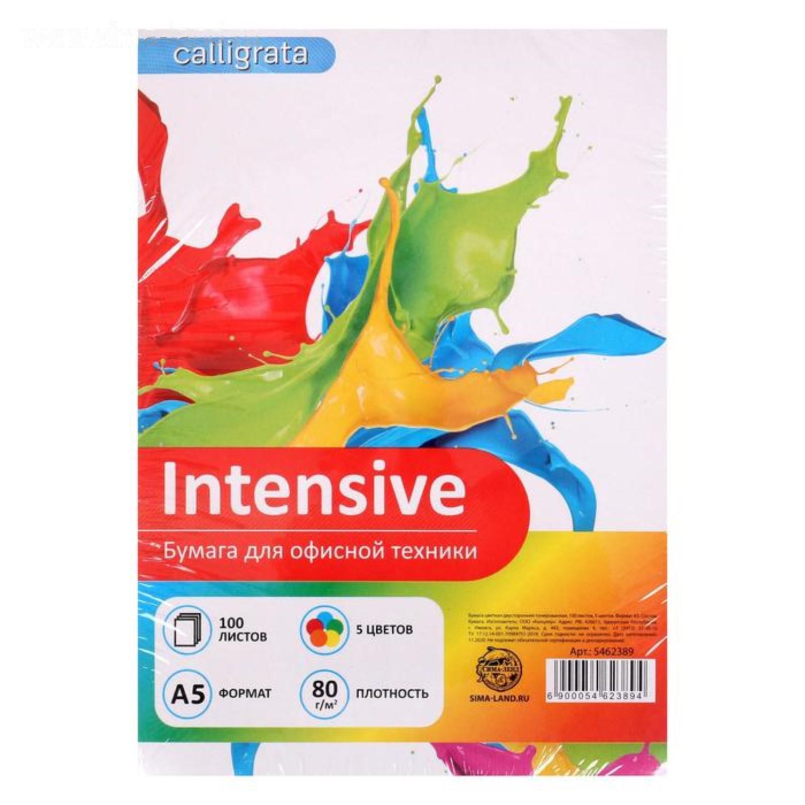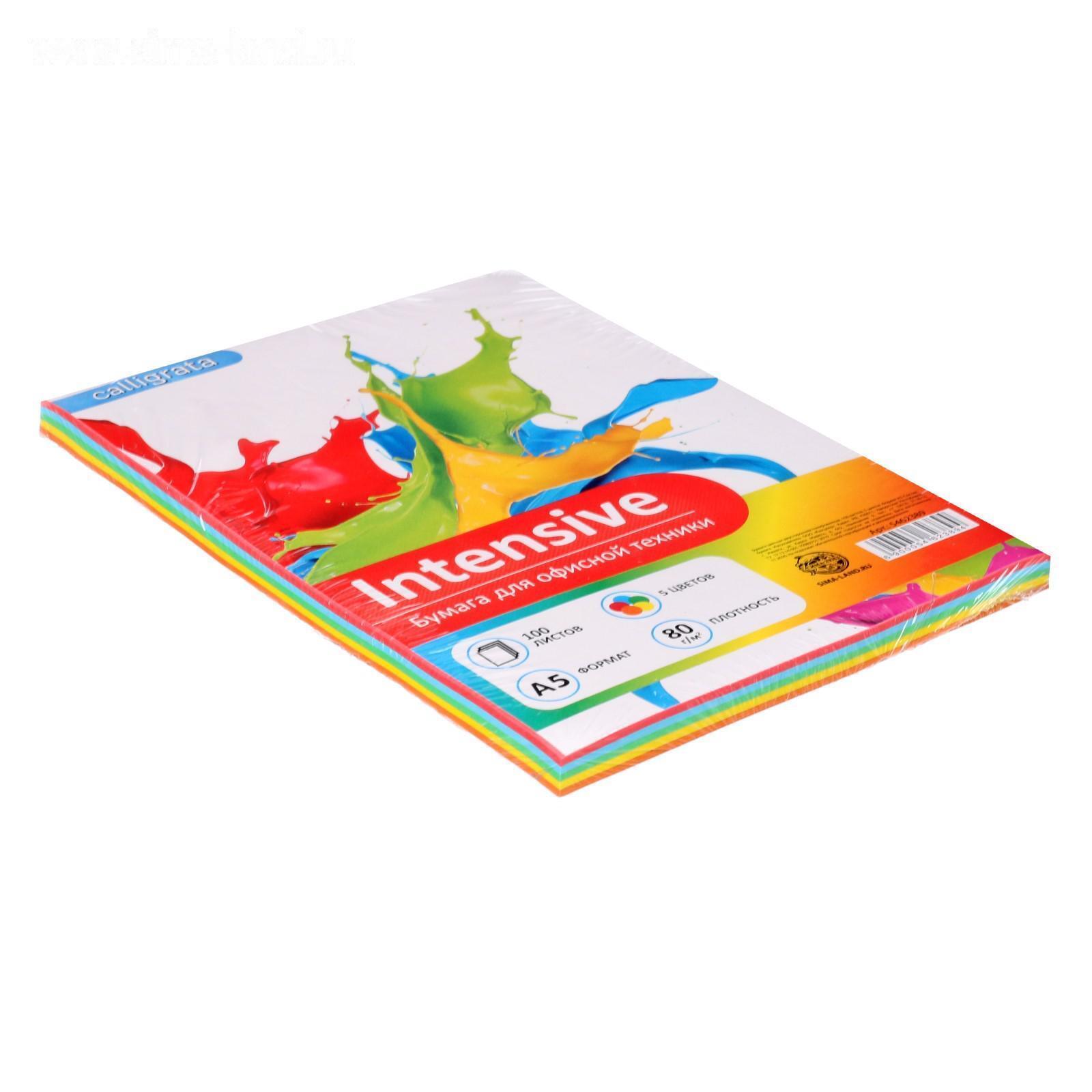 Бумага цветная А5, 100 листов Calligrata Интенсив, 5 цветов, 80 г/м²