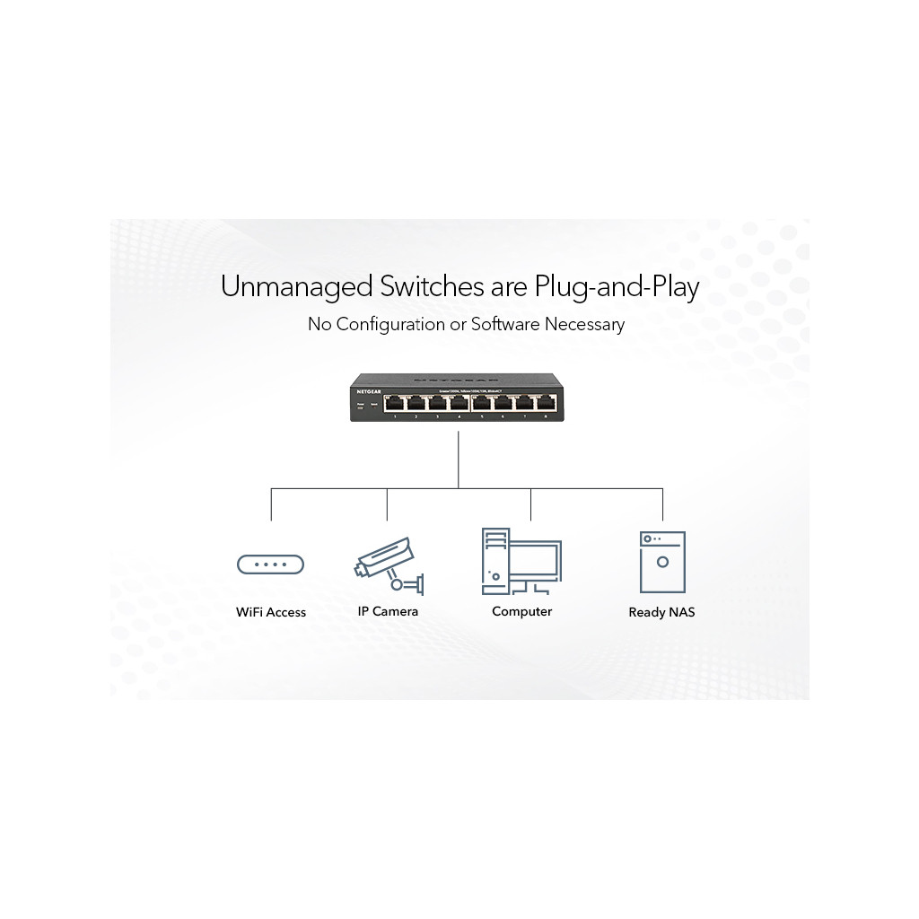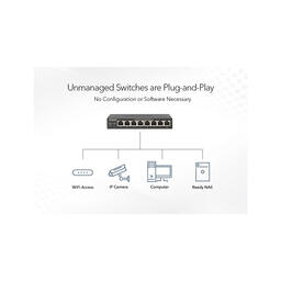 • Відповідність мережевим стандартам 802.1p Priority QoS (всі моделі), 802.3az Energy Efficient Ethernet, IEEE 802.3 CSMA/CD, IEEE 802.3ab 1000Base-T Gigabit Ethernet, IEEE 802.3i 10BASE-T Ethernet, IEEE 802.3u 100BASE-TX Fast Ethernet