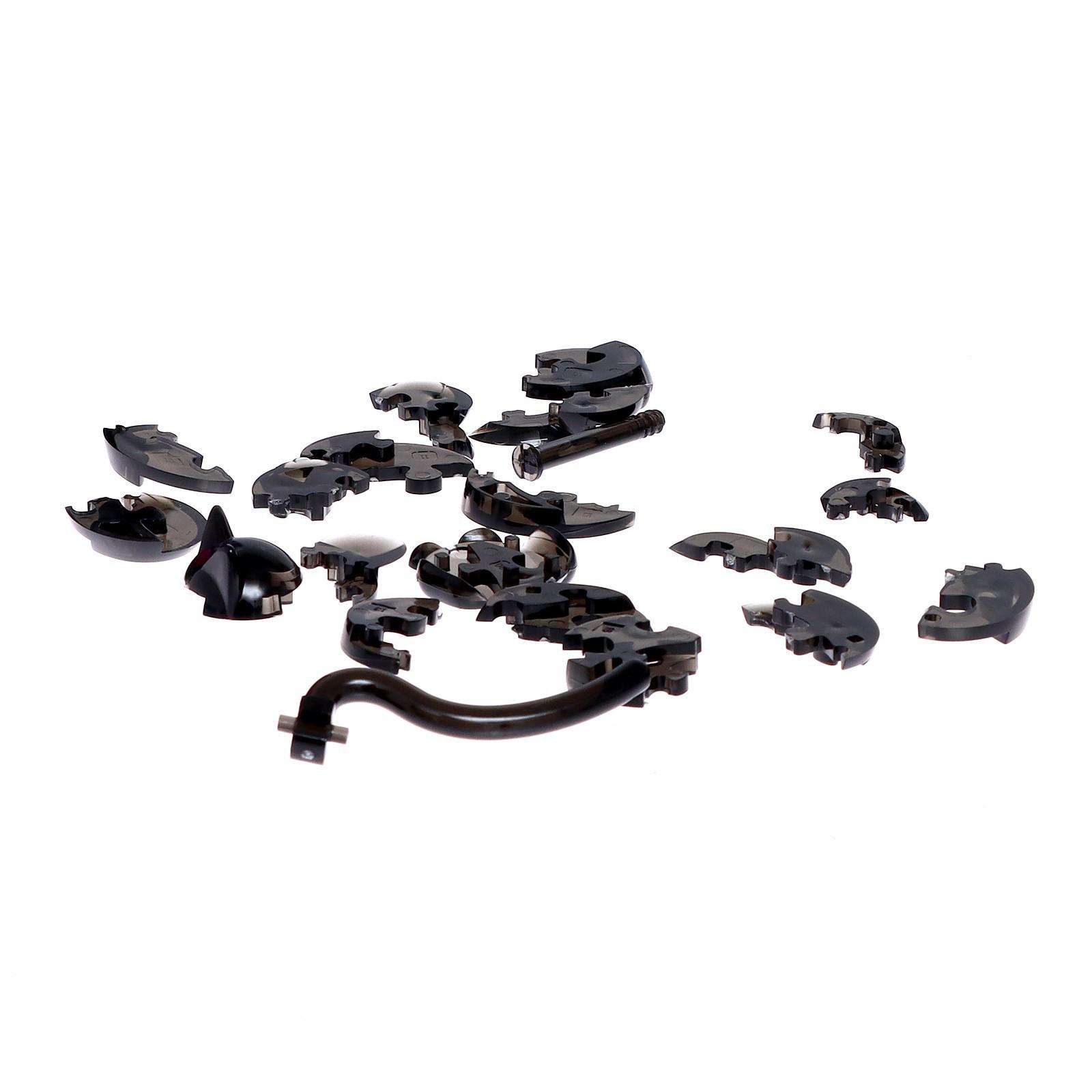 Детали пазла выполнены из полупрозрачного пластика. Элементы соединяются между собой без клея и в результате образуют объёмную фигуру.