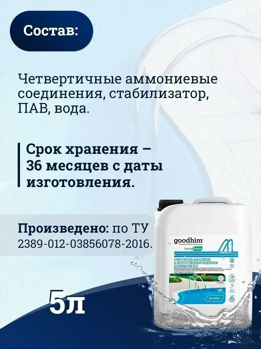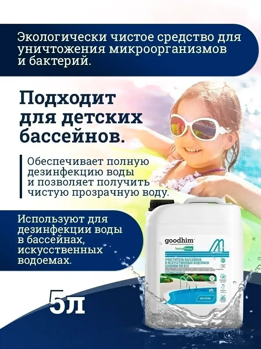 Средство для бассейна дезинфицирующее GoodHim 550 Eco без хлора / 50095 (5л)