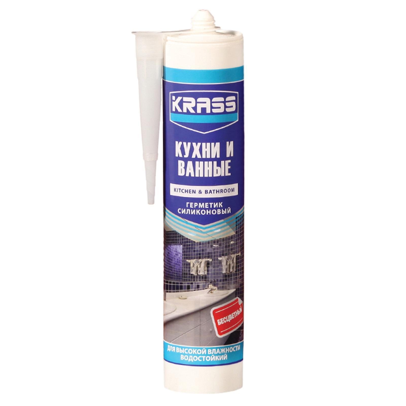 Герметик KRASS, силиконовый, для кухни и ванны, прозрачный, 300 мл