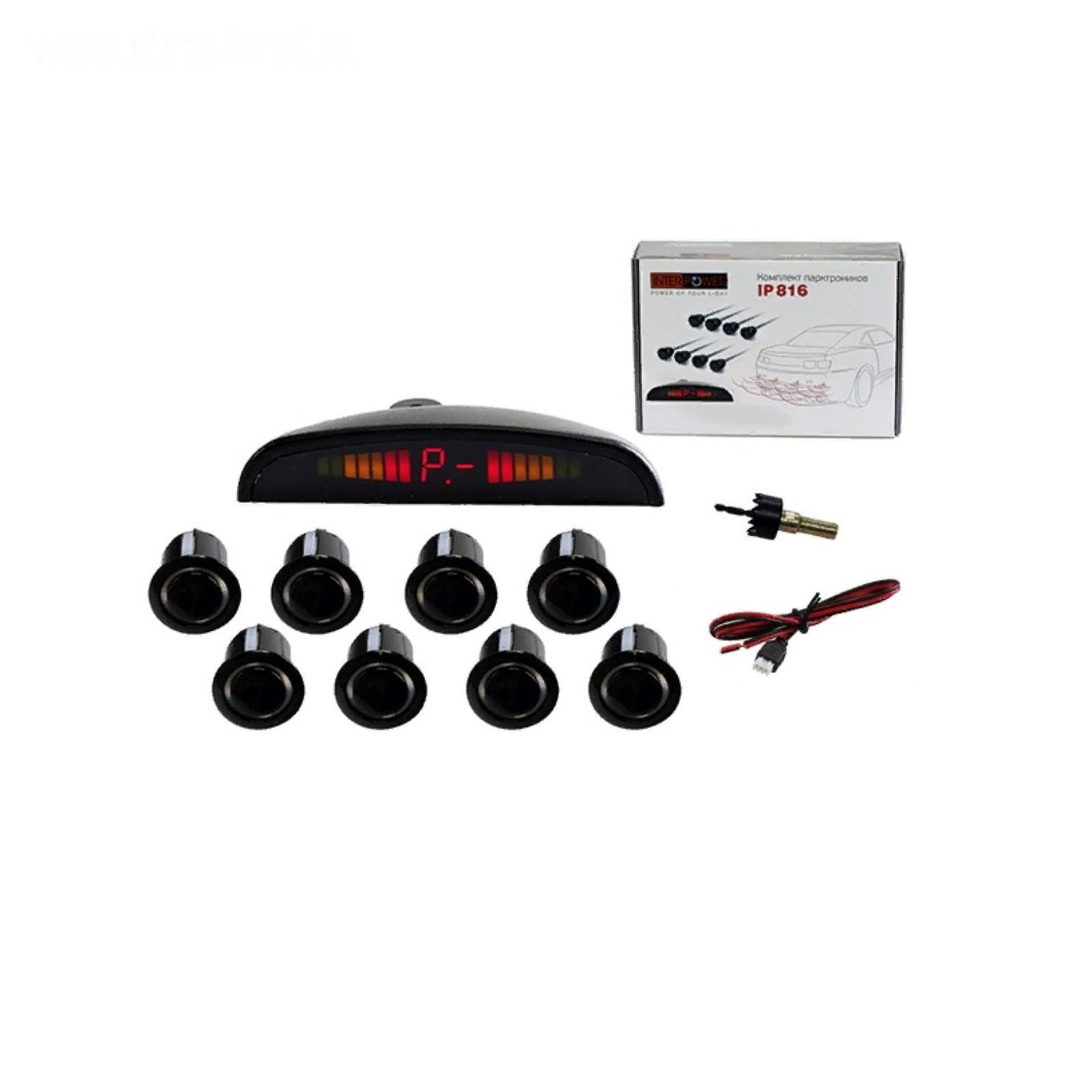 Парктроник Interpower IP-816 — модель 2015 года — имеет 8 ультразвуковых датчиков: 4 из них устанавливаются в задний бампер, а 4 других — в передний. Такая система делает процесс парковки более комфортным и быстрым.
